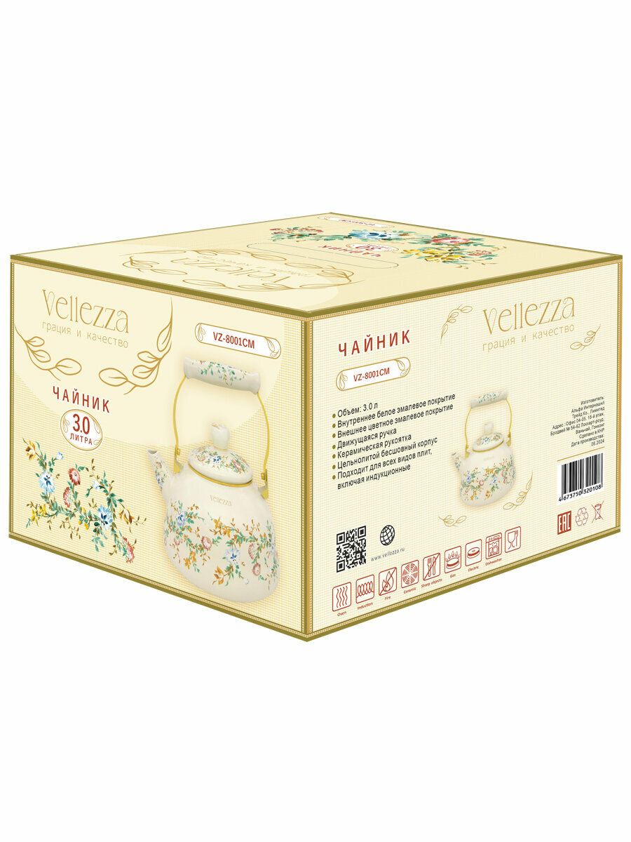 VELLEZZA 14673750320037 VELLEZZA VZ-8002WT Чайник эмалированный