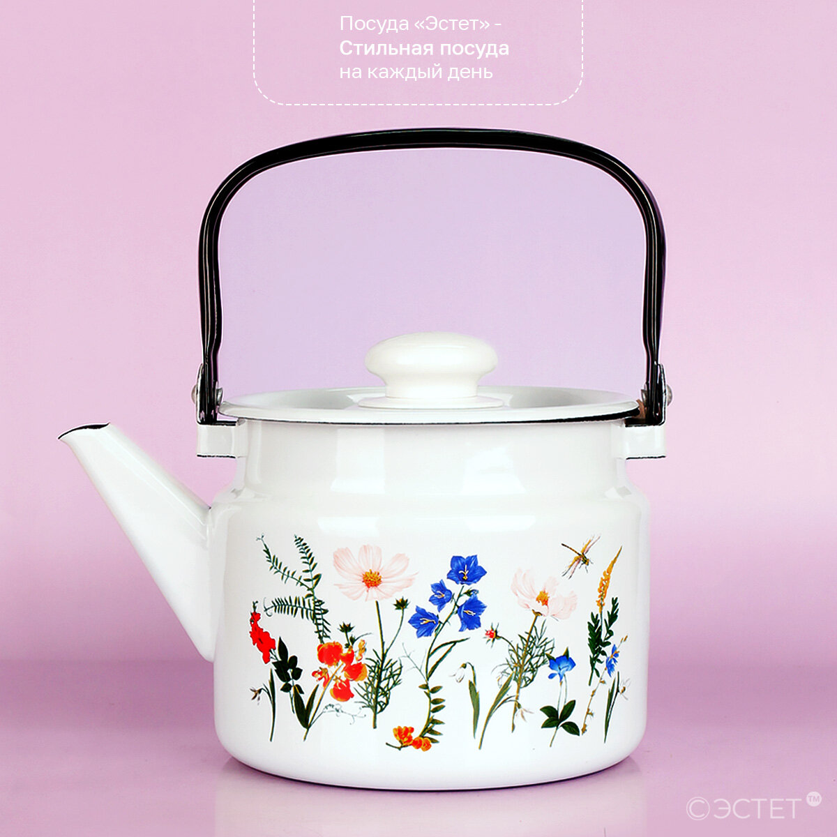 Купить Чайник эмалированный 2,0 л для всех видов плит "Луговые цветы"
