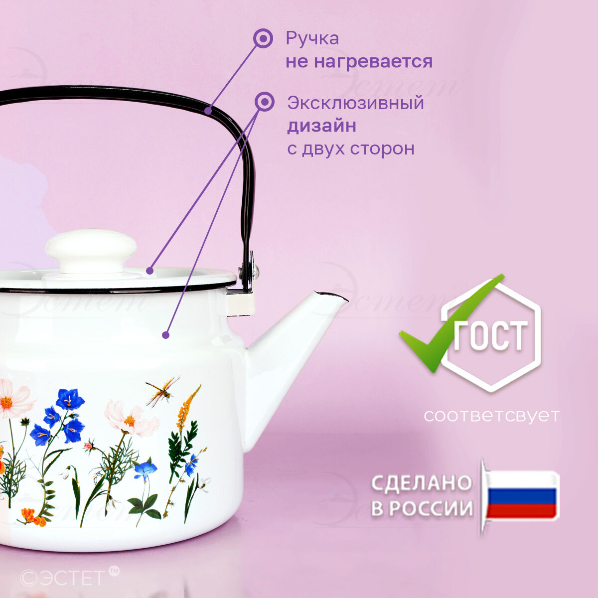 Чайник эмалированный 2,0 л для всех видов плит "Луговые цветы" интересное: