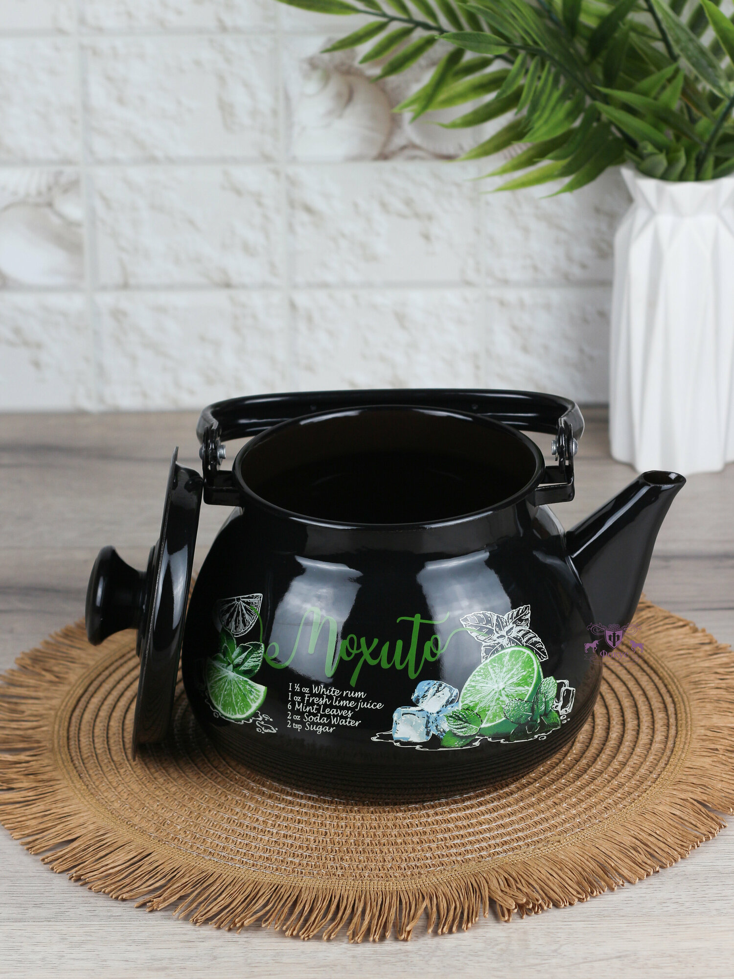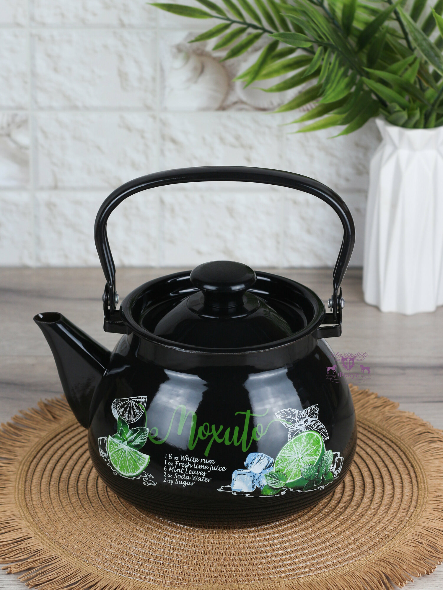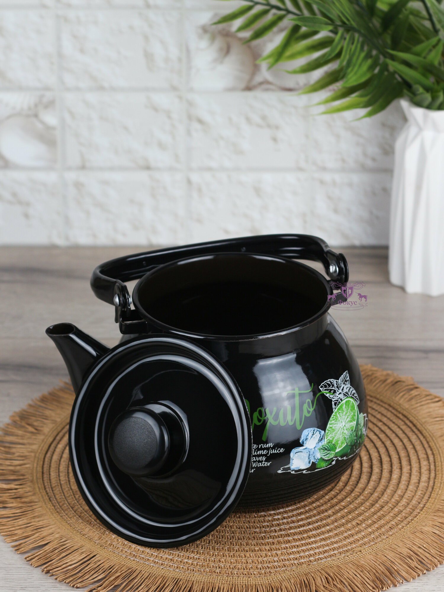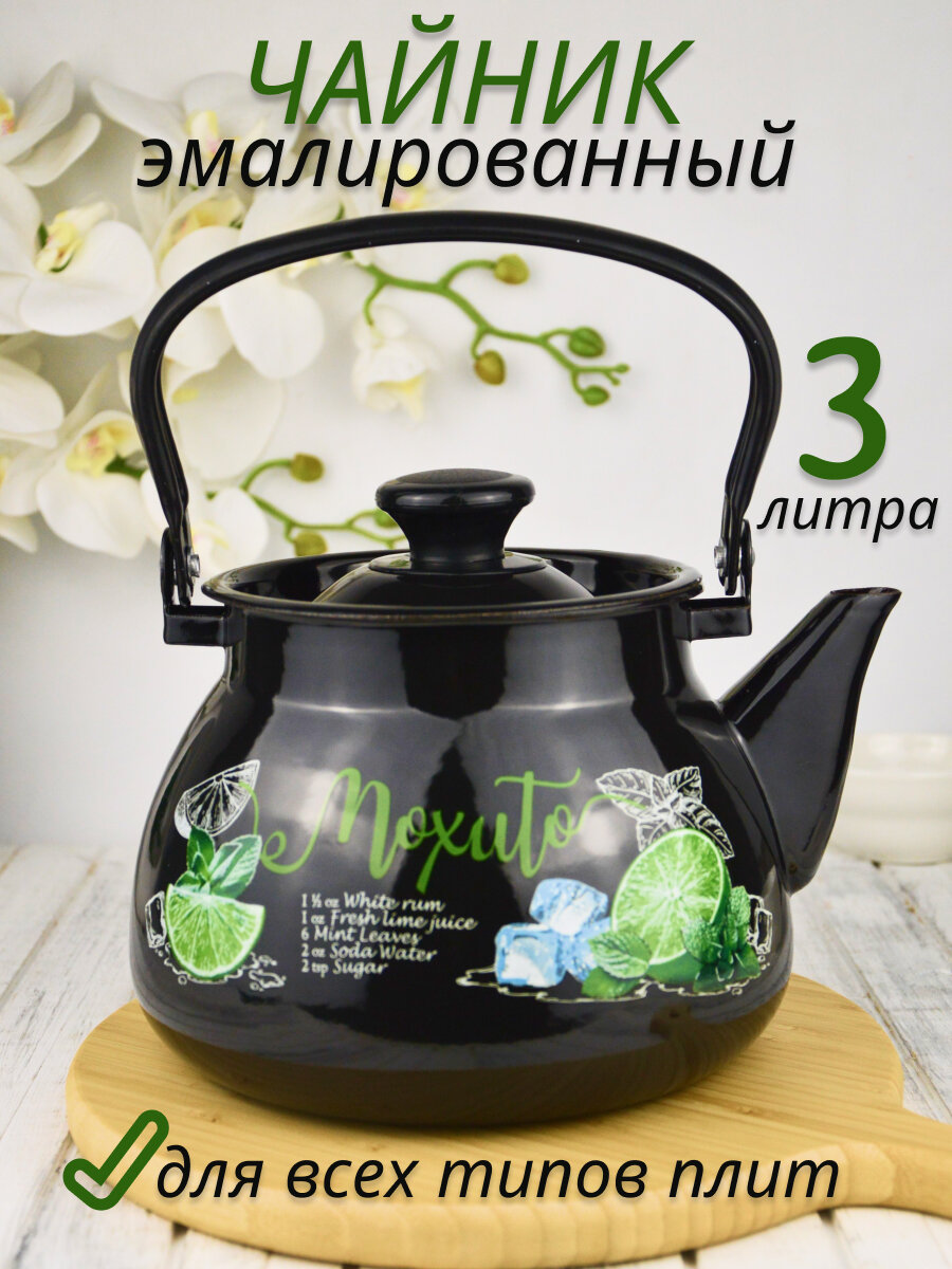 Чайник эмалированный "Мохито", с металлической ручкой, 3 л, черный интересное:
