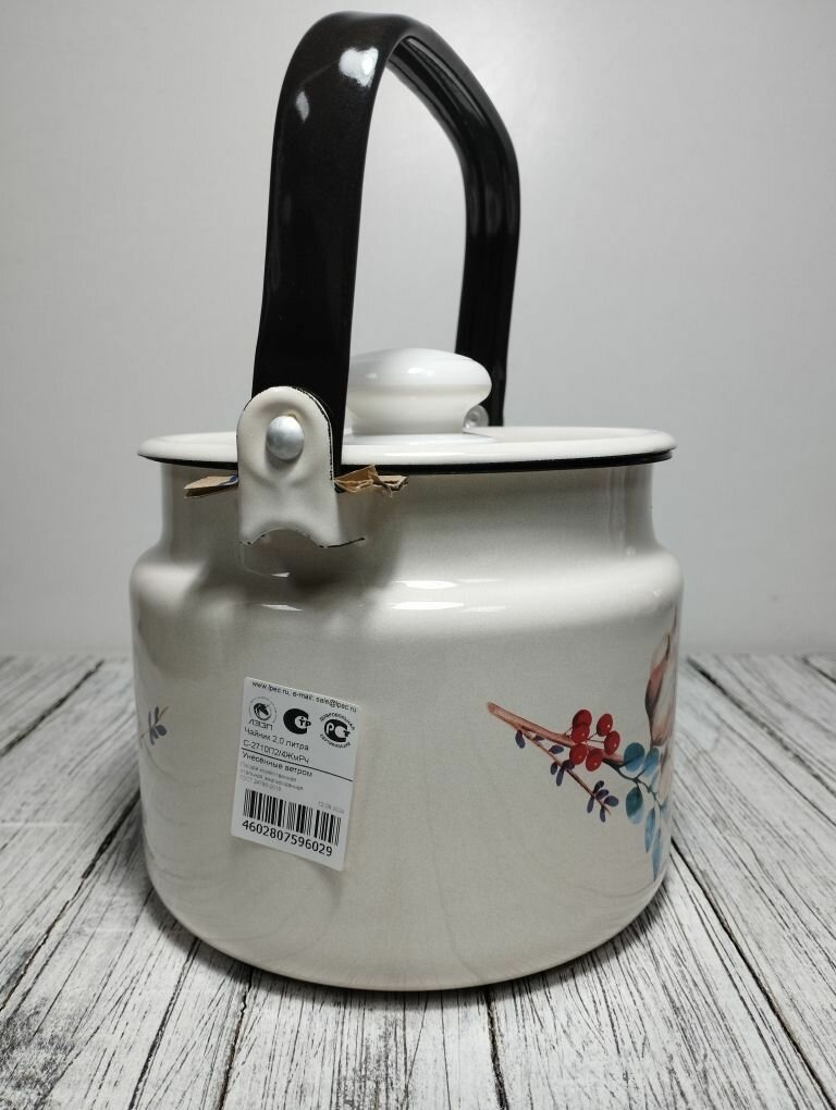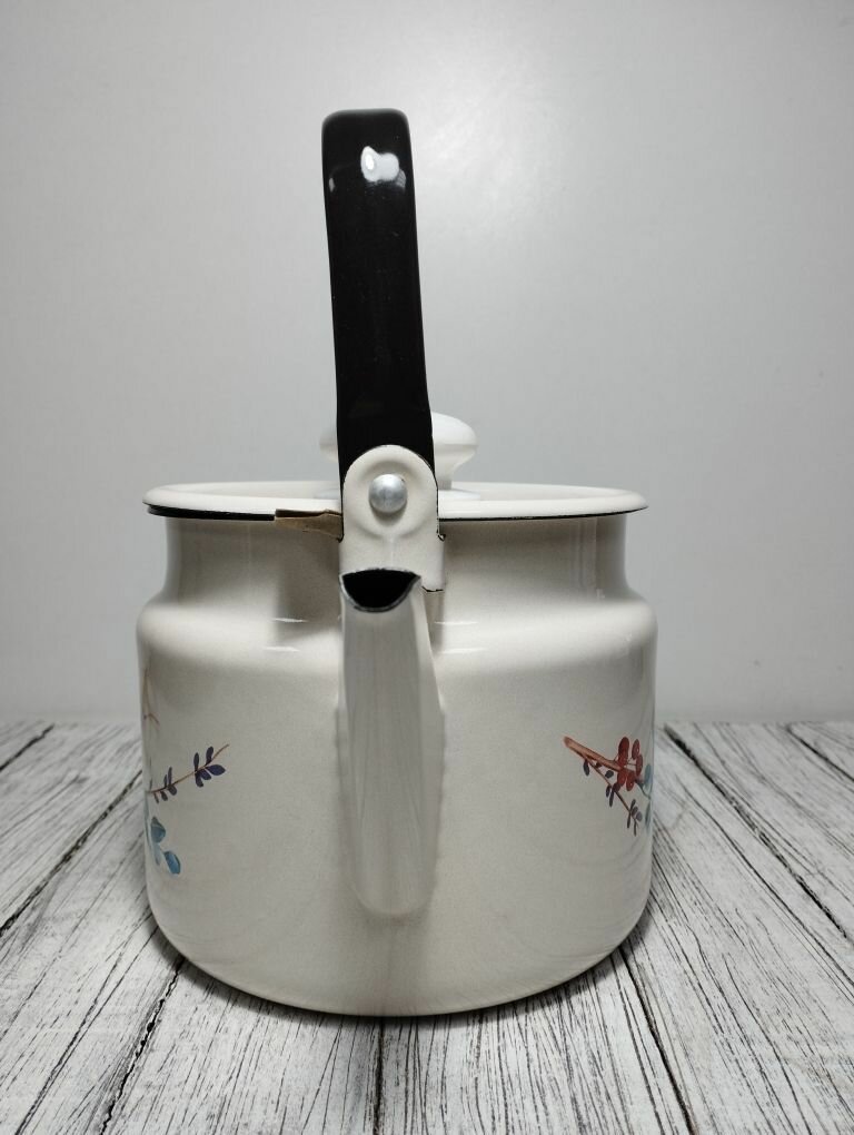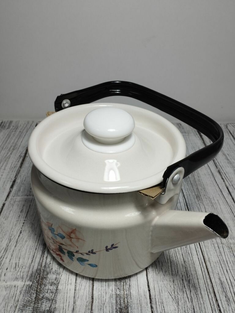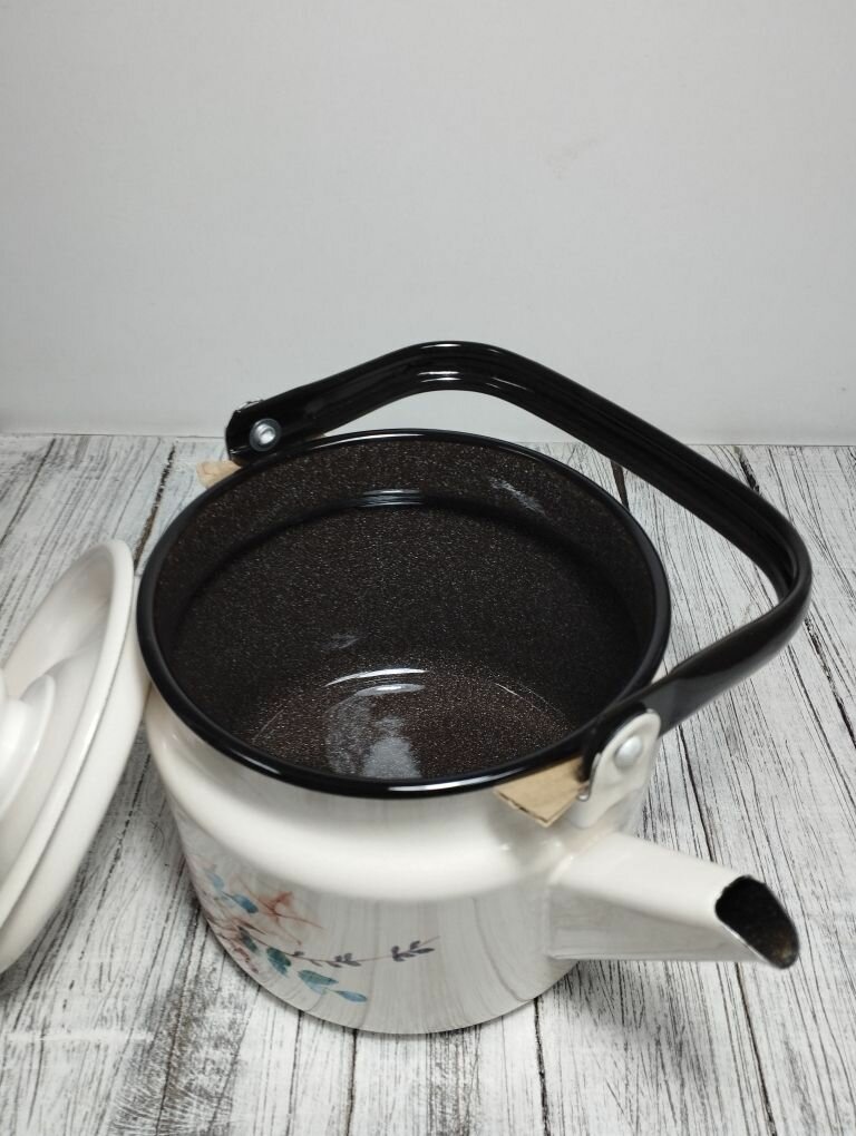 Чайник эмалированный 2 литра Лысьва белый, татьяна, подвижная ручка, все виды плит, индукция