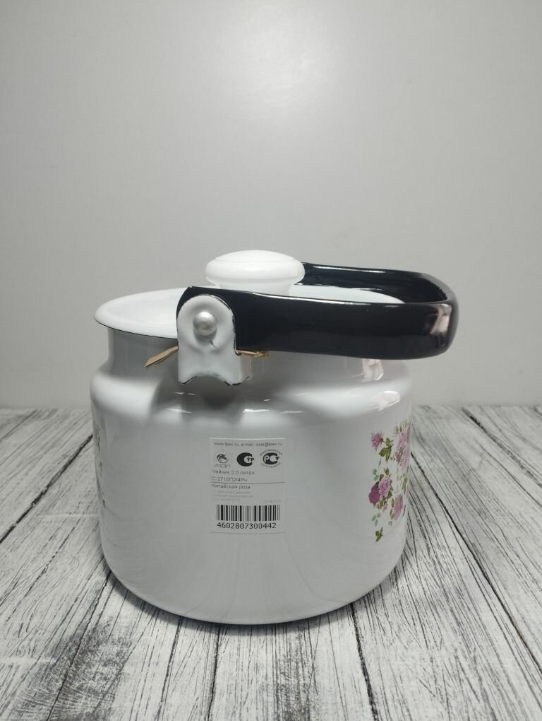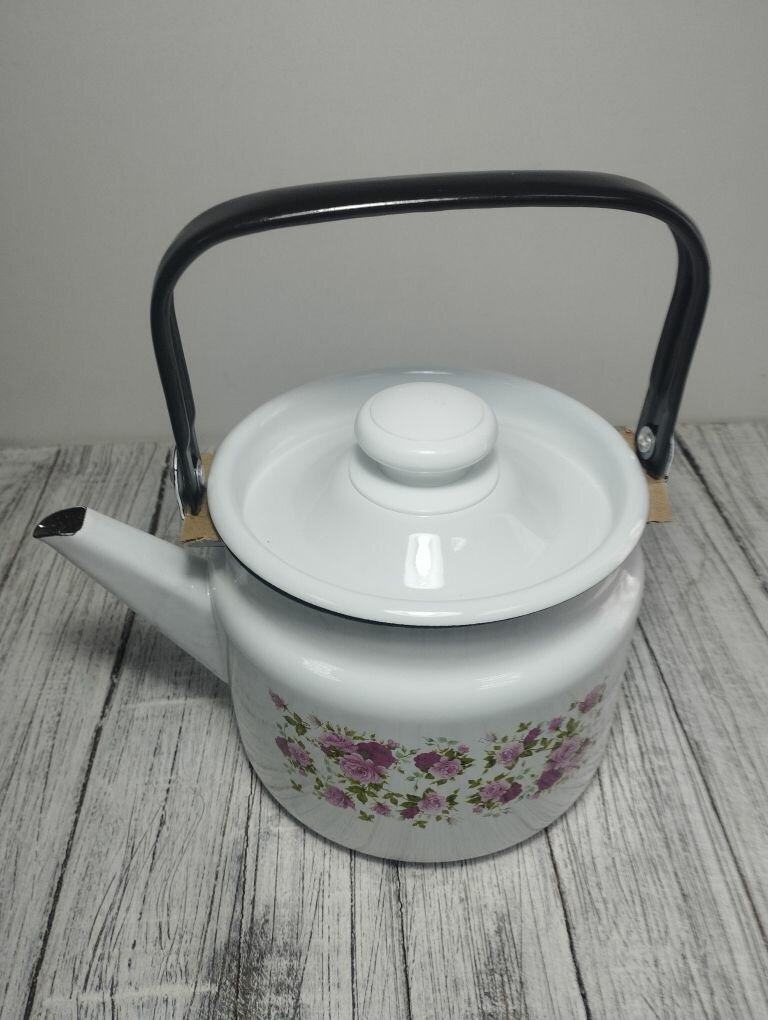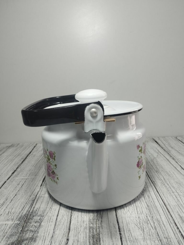 Купить Чайник эмалированный 2 литра Лысьва белый, китайская роза, подвижная ручка, все виды плит, индукция