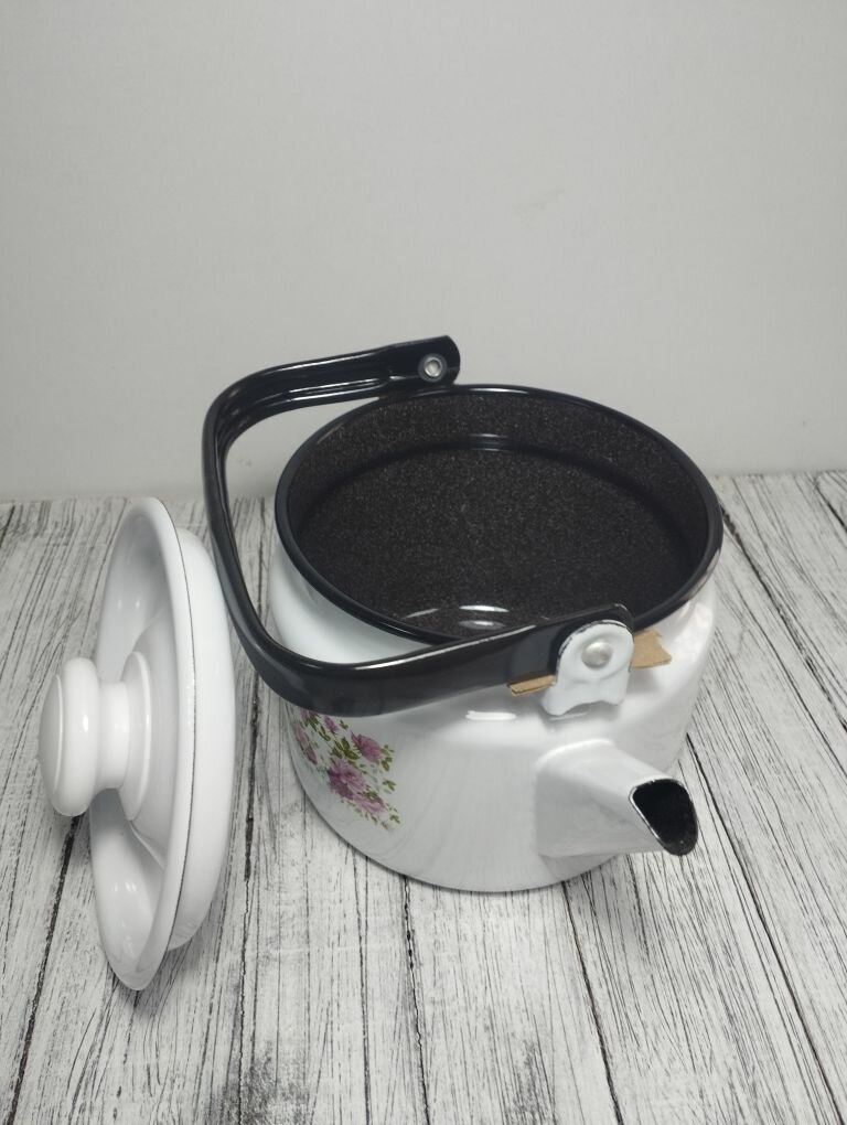 Чайник эмалированный 2 литра Лысьва белый, татьяна, подвижная ручка, все виды плит, индукция