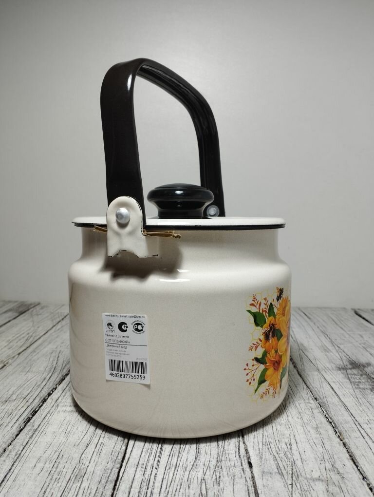 Купить Чайник эмалированный 2 литра Лысьва кремовый, цветочный МЕД, подвижная ручка, все виды плит, индукция