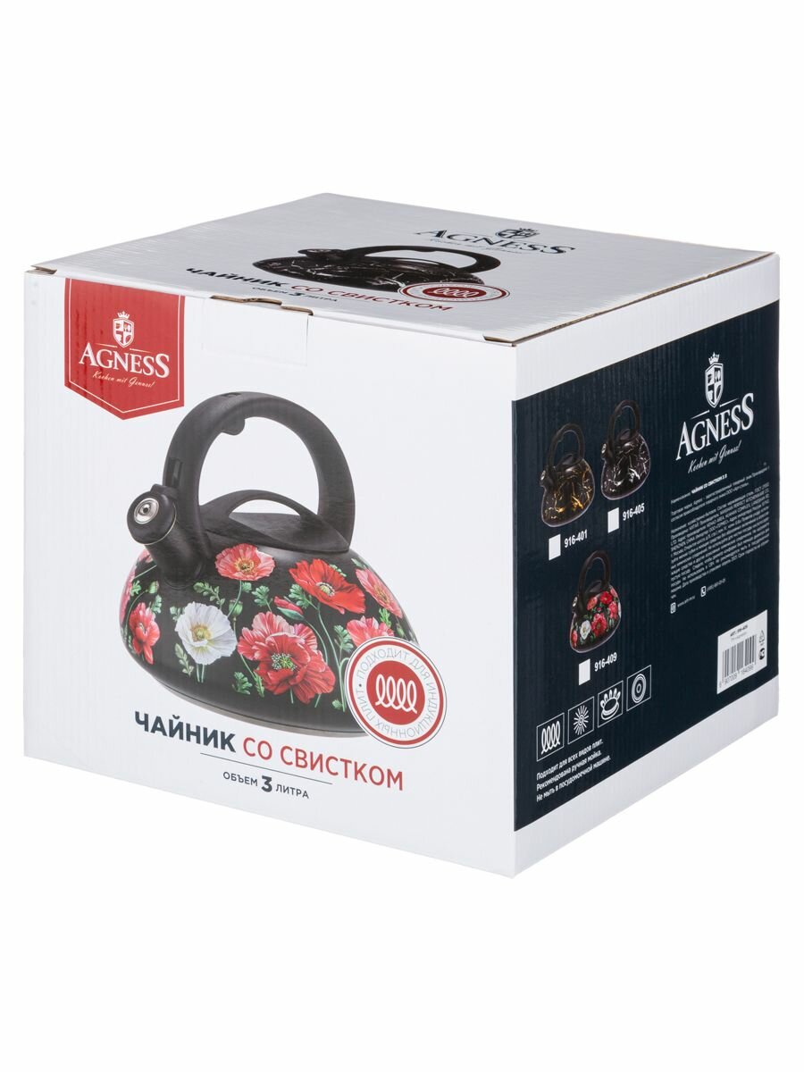 Чайник Agness "Fantasy", 3 л, со свистком, для всех видов плит