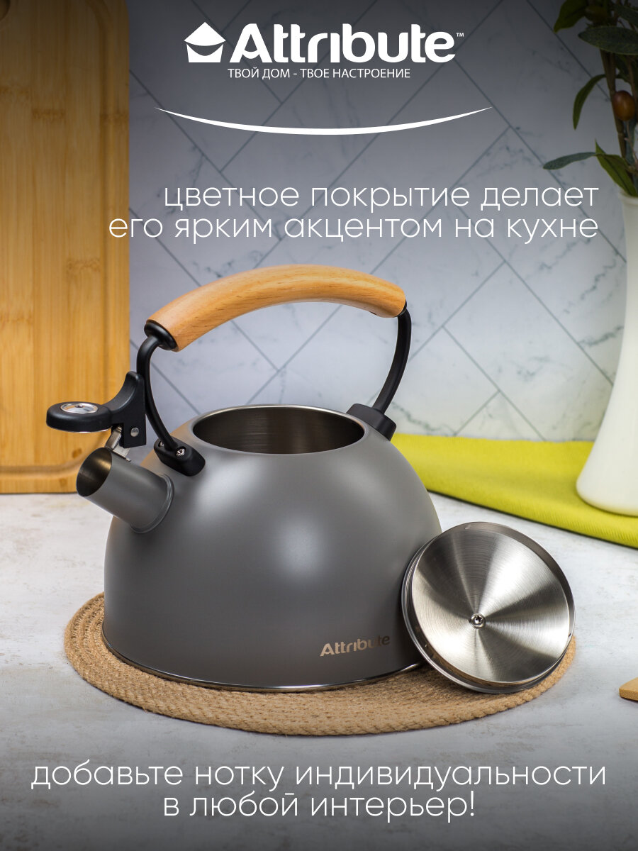 Чайник со свистком Attribute SCANDINAVIA 2.5л серый, 1 штука, для всех типов плит интересное: