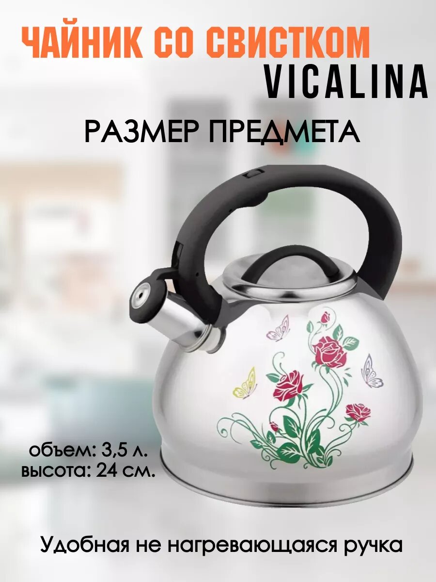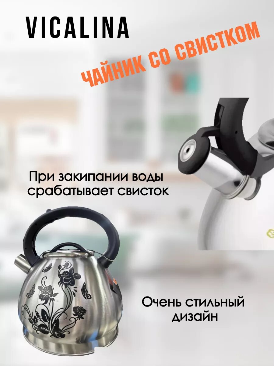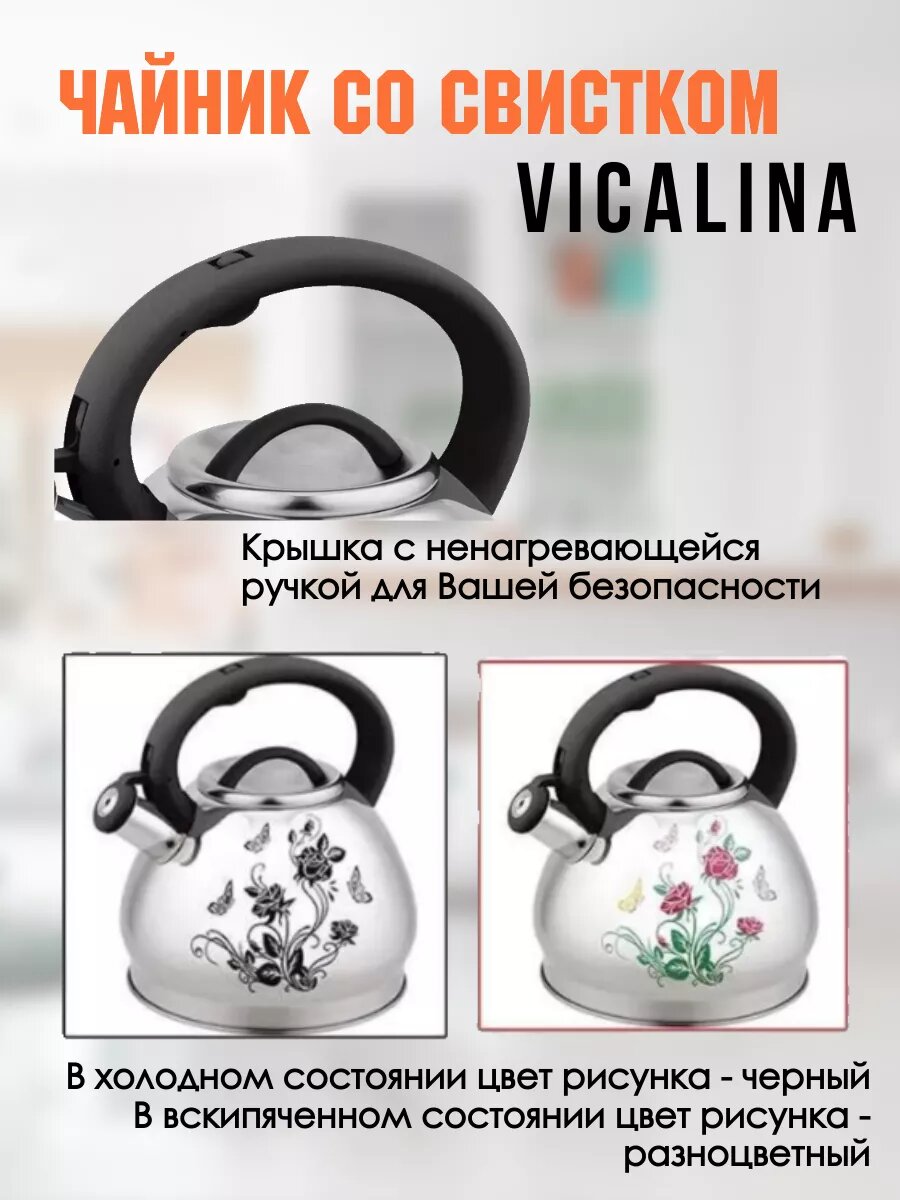 Чайник Vicalina VL-8001, нержавеющая сталь, изменяемый цвет, 3.5л, со свистком интересное: