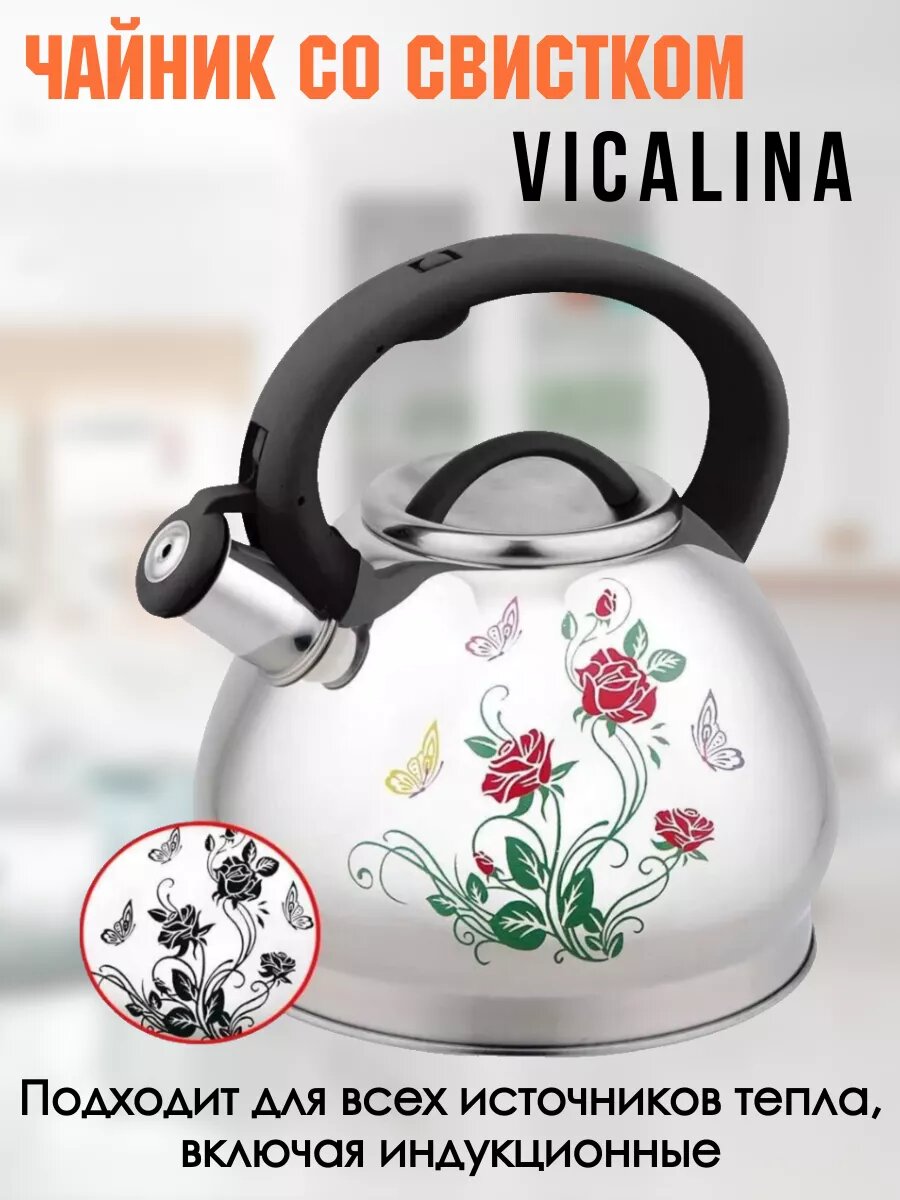 Купить Чайник Vicalina VL-8001, нержавеющая сталь, изменяемый цвет, 3.5л, со свистком