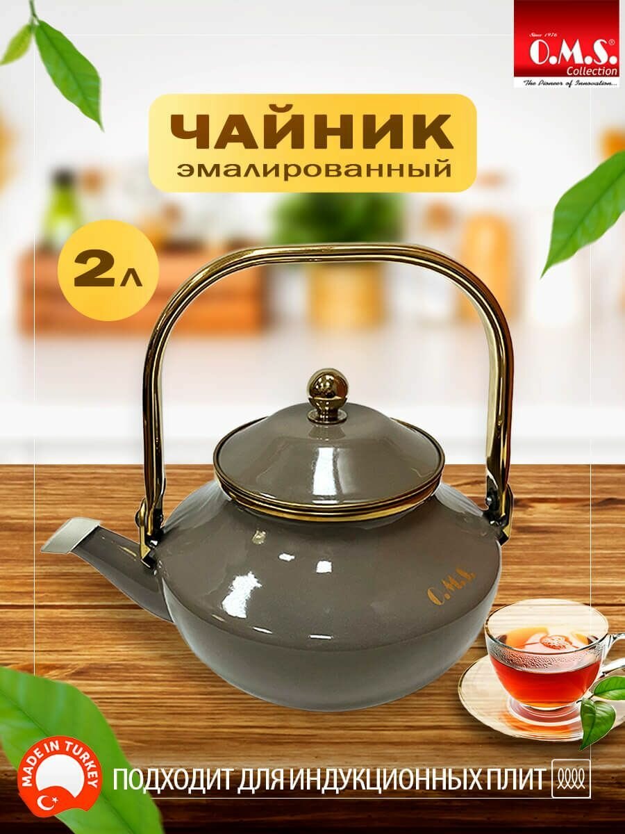Купить Чайник O.M.S Collection, 2л, для индукции, эмалевый, зеркальный, серо-коричневый