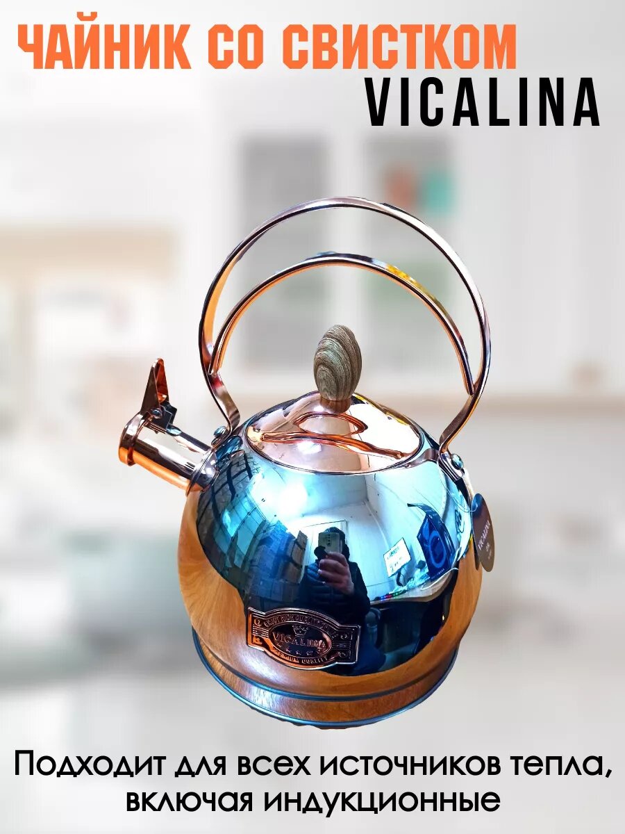 Чайник со свистком 2,8 л. Vicalina золотистый нержавеющая сталь зеркальный интересное: