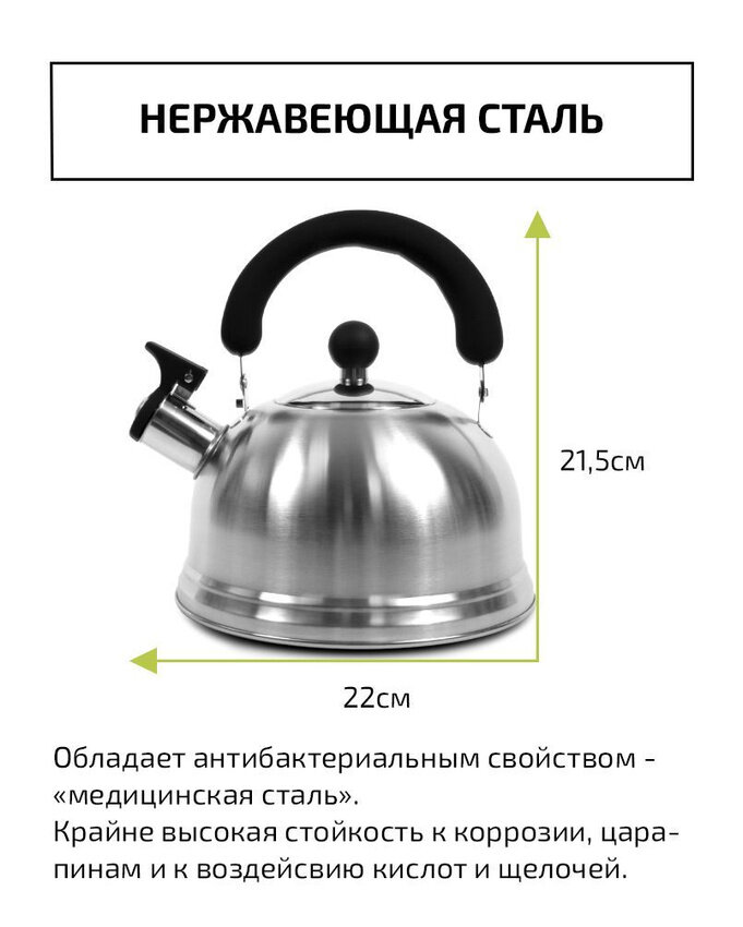 Чайник 2,5л из нержавеющей стали TIMA капсульное дно индукция со свистком ручка Soft-touch WTK160 интересное: