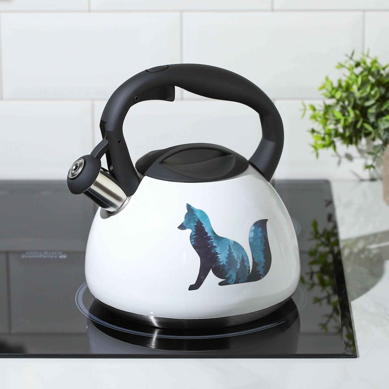 Купить Чайник со свистком из нержавеющей стали Доляна «Лиса», 3 л, с индикатором нагрева, 5406062