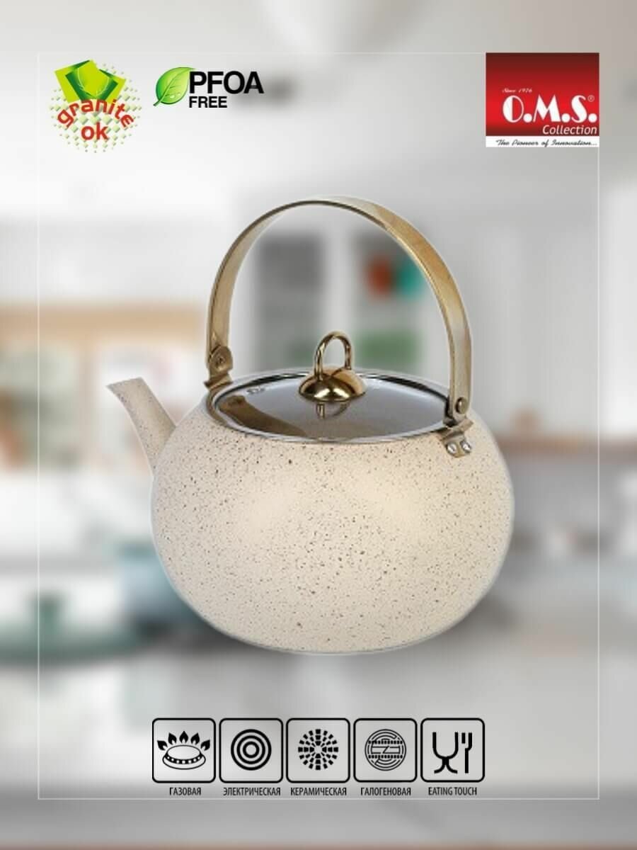 Чайник O.M.S Collection, для всех типов плит, алюминий, 3л, слоновая кость