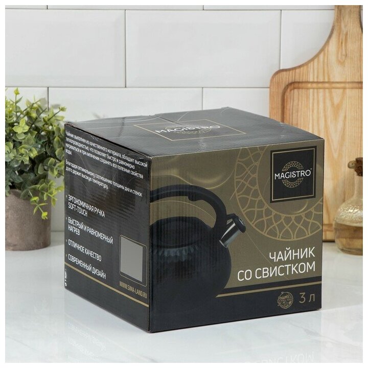 Чайник со свистком из нержавеющей стали Magistro Glow, 3 л, индукция, ручка soft-touch, цвет белый, 6534630 интересное: