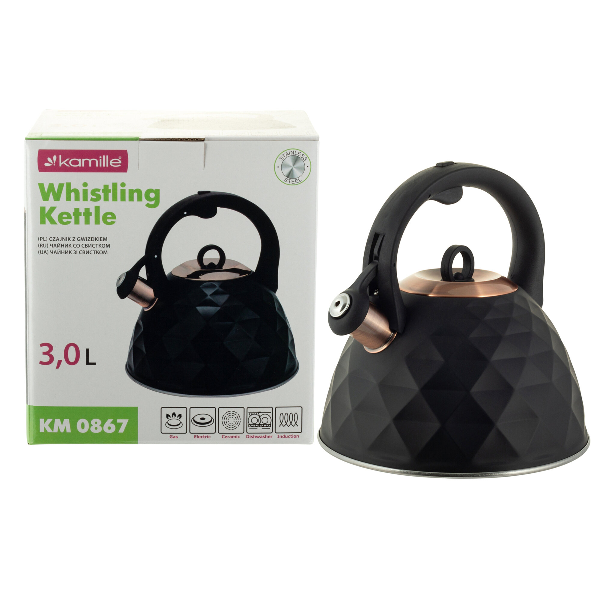 Чайник 3 л. из нержавеющей стали со свистком Kamille KM 0867 (3 л. / черный) интересное: