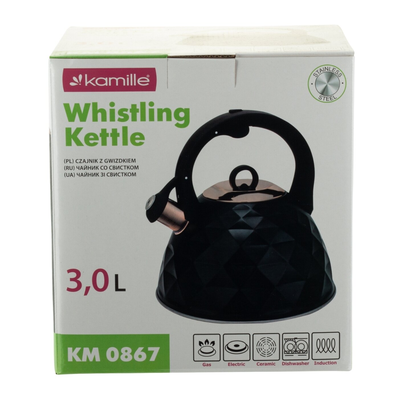 Купить Чайник 3 л. из нержавеющей стали со свистком Kamille KM 0867 (3 л. / черный)