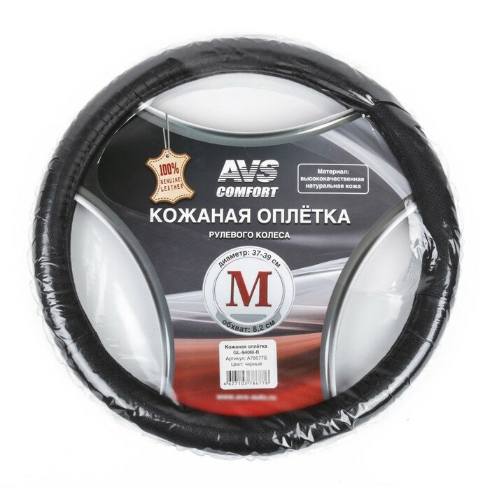 AVS Оплетка на руль AVS GL-940M-B, натуральная кожа, размер M, черный