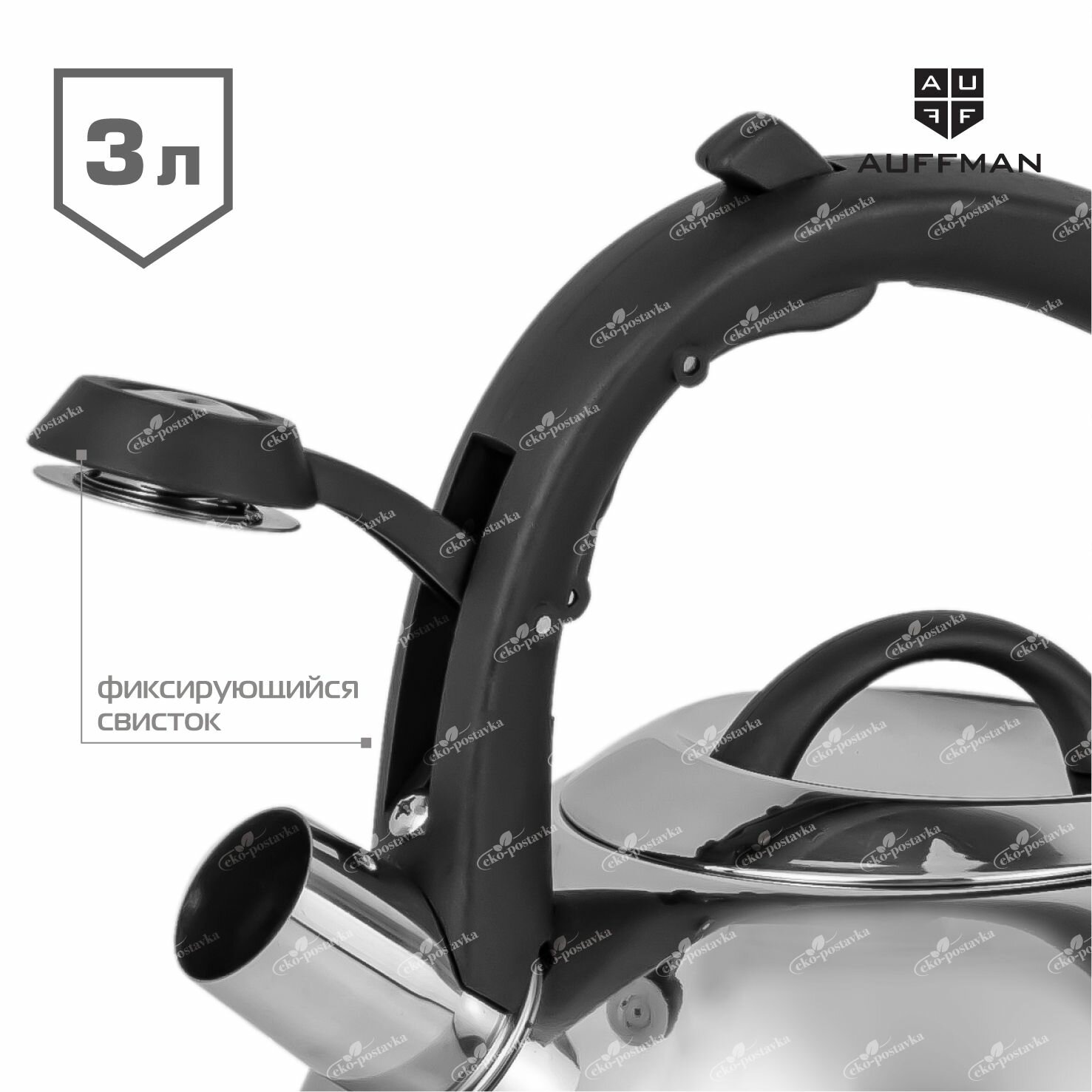 Чайник AUFFMAN из нержавеющей стали со свистком 3 литра ненагревающаяся бакелитовая ручка интересное: