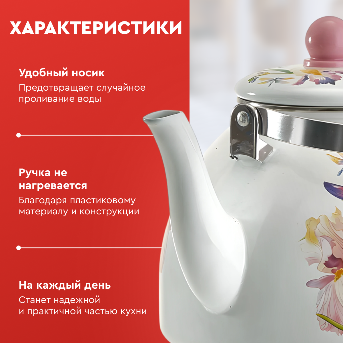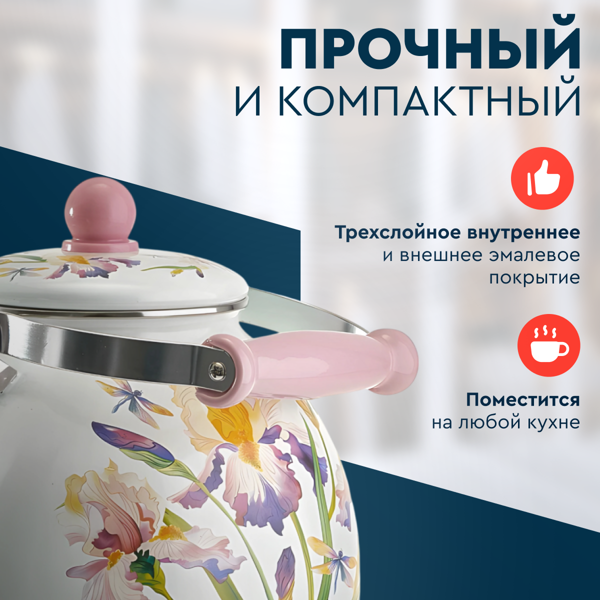 Чайник эмалированный EM-1316 "Ирисы", 4 литра, зачерненное дно, для всех типов плит, белый интересное:
