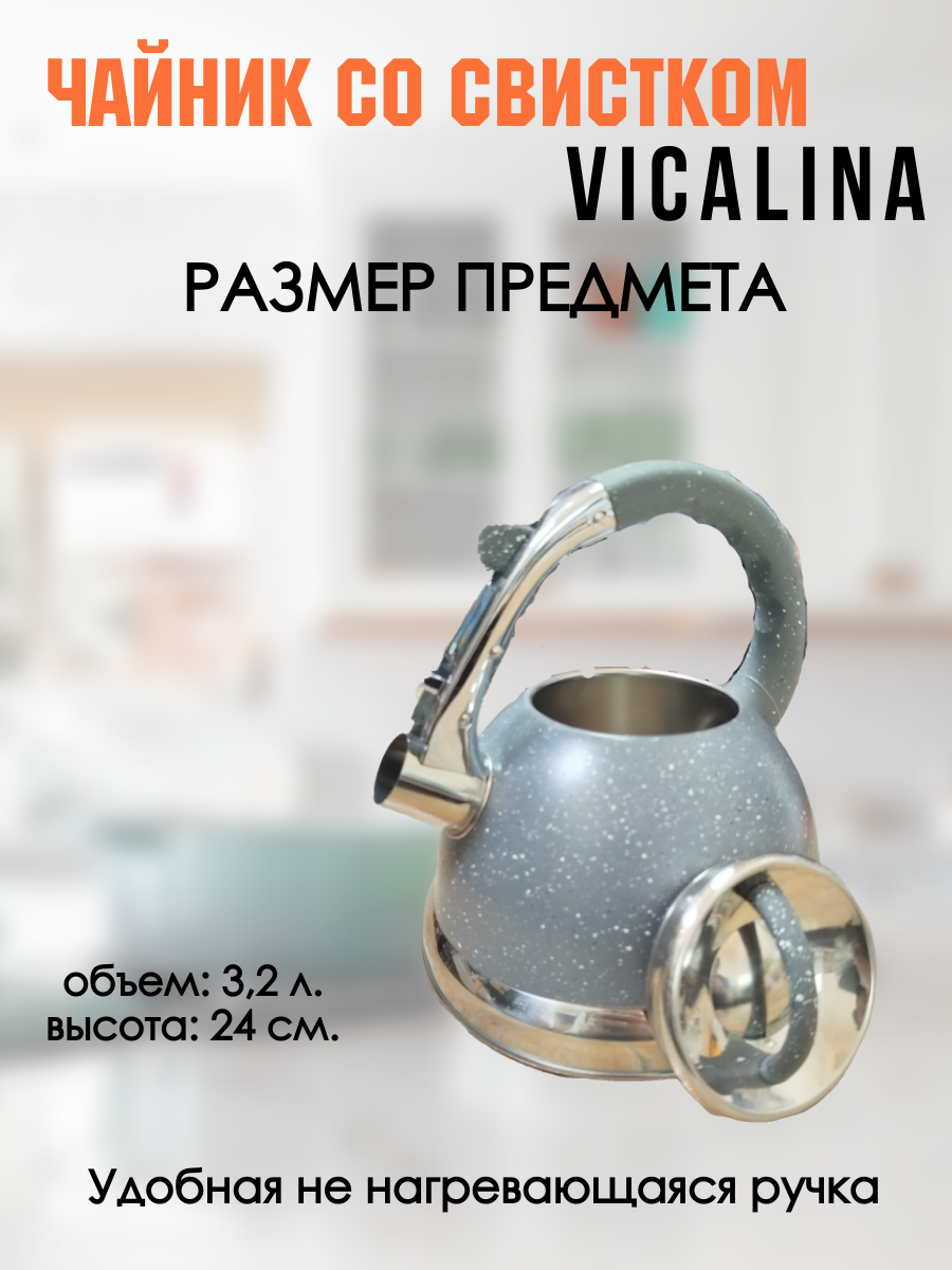 Чайник со свистком 3,5 литра Vicalina vl-9167 цвет серый мрамор интересное:
