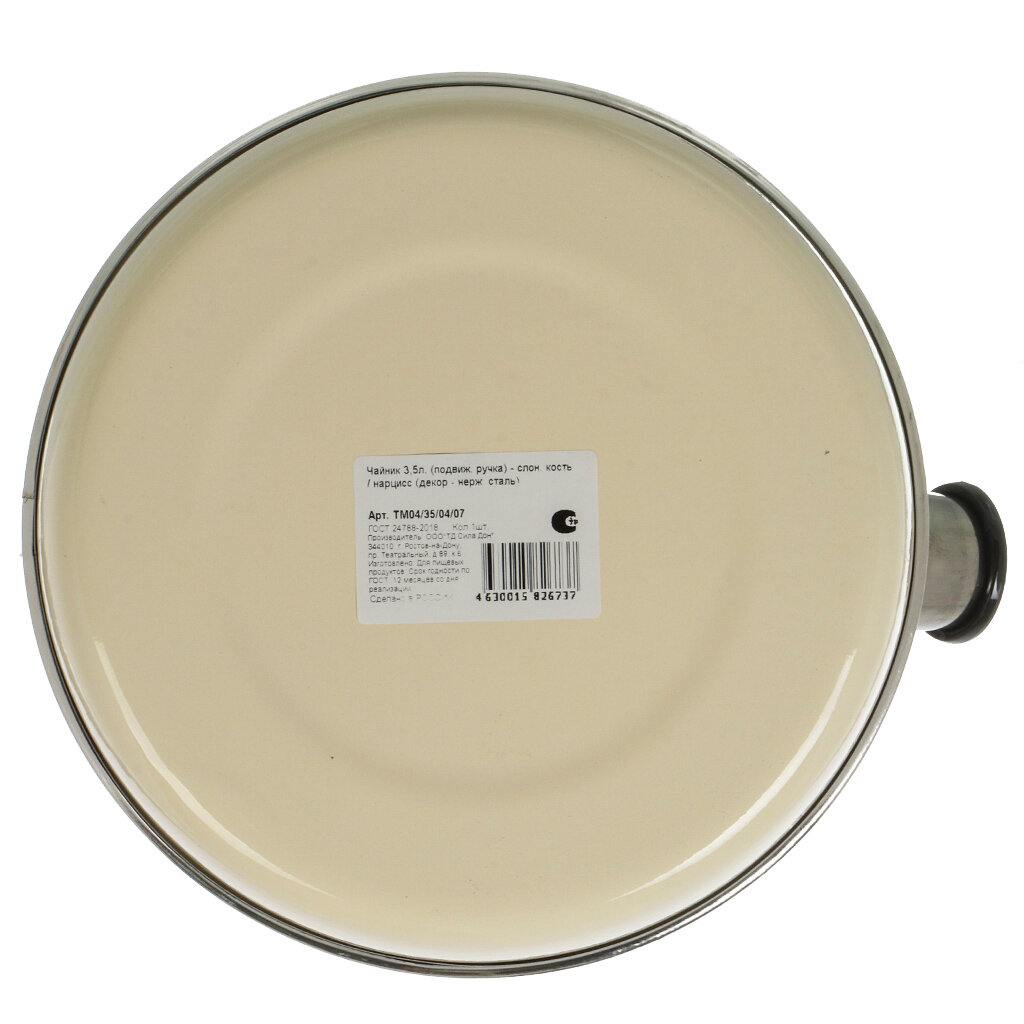 СохранитьРубин чайник для плиты из эмалированной стали со свистком, 3.5 л, слоновая кость, Нарцисс интересное: