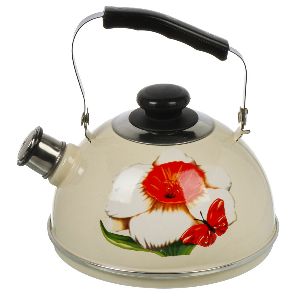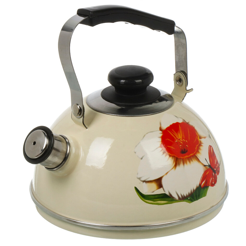 Купить Рубин чайник для плиты из эмалированной стали со свистком, 2.5 л, слоновая кость