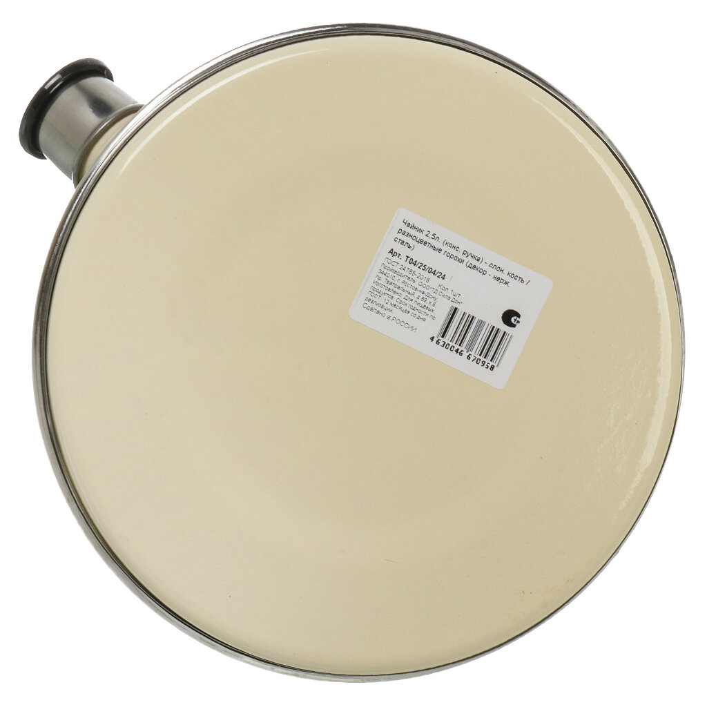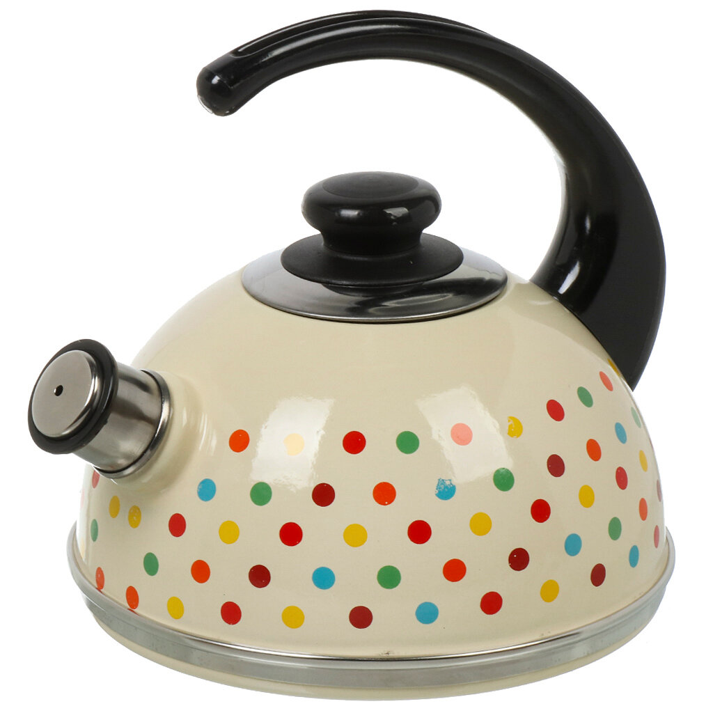 Купить Рубин чайник для плиты из эмалированной стали со свистком, 2.5 л, слоновая кость, Разноцветные горохи
