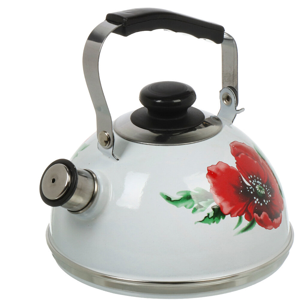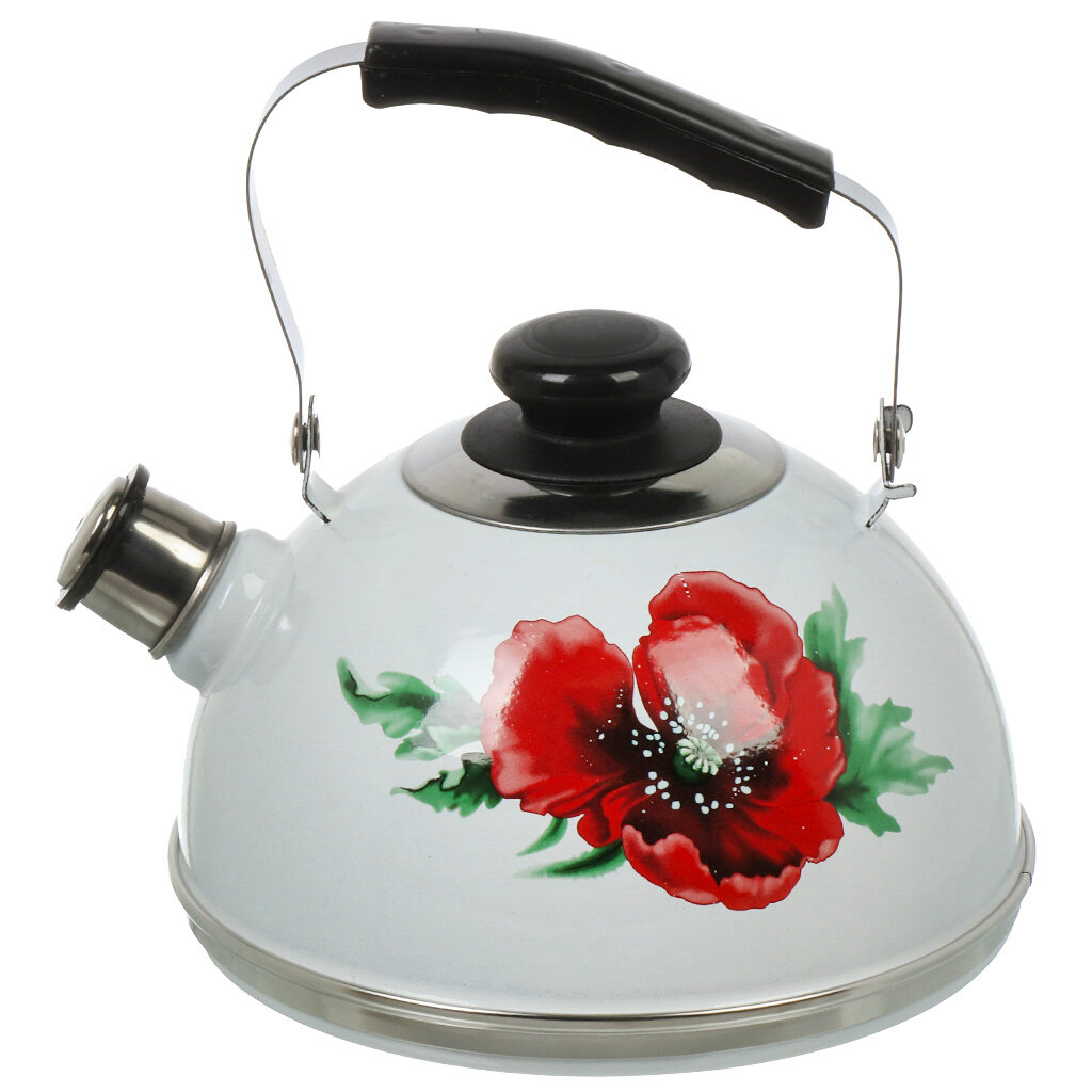 Купить Рубин чайник для плиты из эмалированной стали со свистком, 2.5 л, белый, Маковый цветок