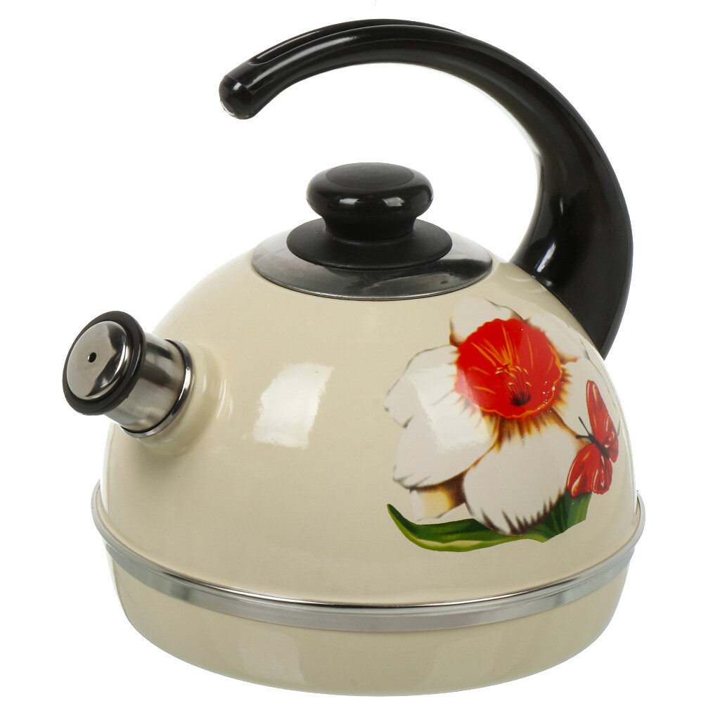 Рубин чайник для плиты из эмалированной стали со свистком, 3.5 л, слоновая кость, Нарцисс