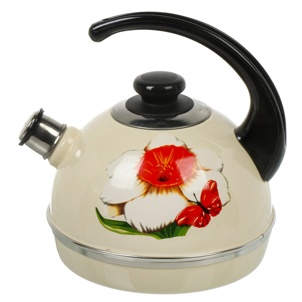 Купить Рубин чайник для плиты из эмалированной стали со свистком, 3.5 л, слоновая кость
