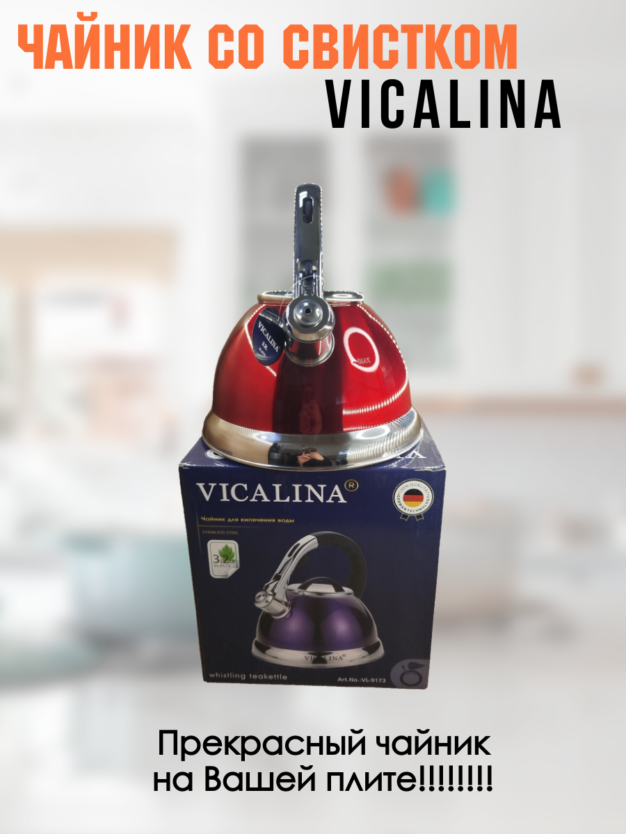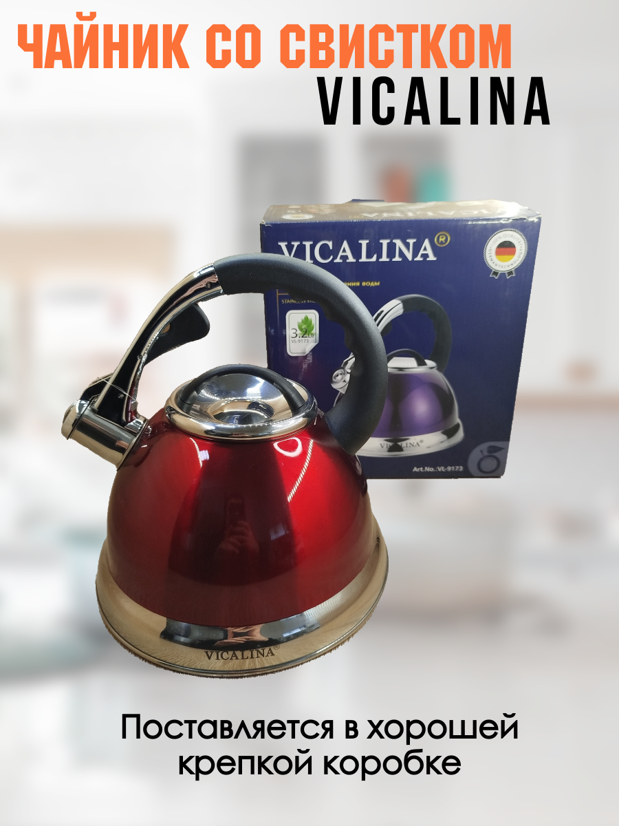 Чайник со свистком 3,5 литра Vicalina vl-9173 яркий красный глянец интересное: