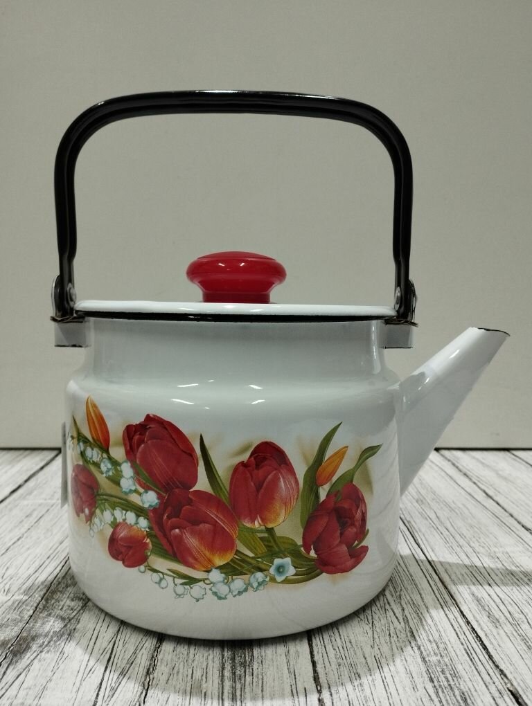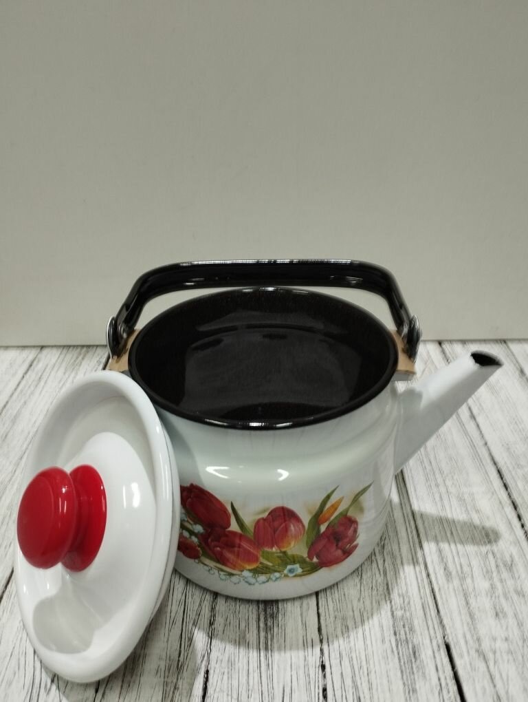 Чайник эмалированный 2 литра Лысьва белый июнь, подвижная ручка, все виды плит, индукция