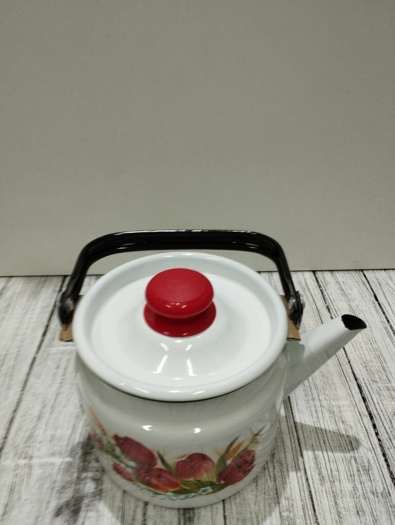 Чайник эмалированный 2 литра Лысьва белый, урожай, подвижная ручка, все виды плит, индукция