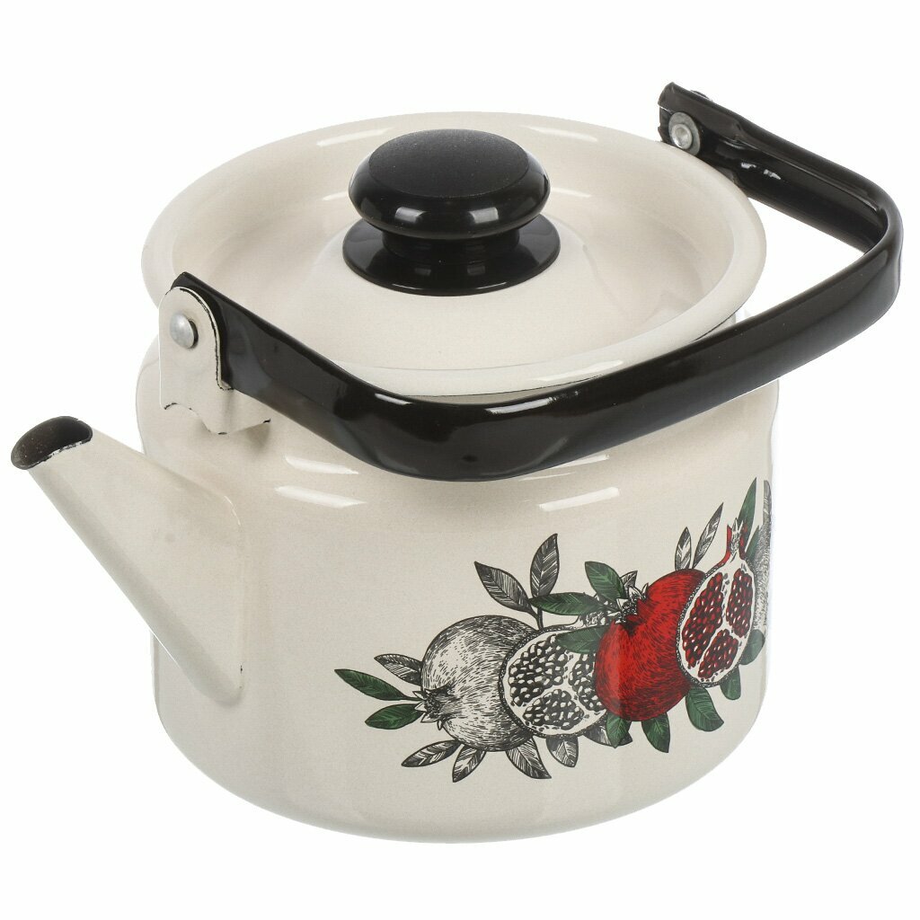 Чайник эмалированный 2 литра Лысьва белый, фруктовая фантазия, подвижная ручка, все виды плит, индукция