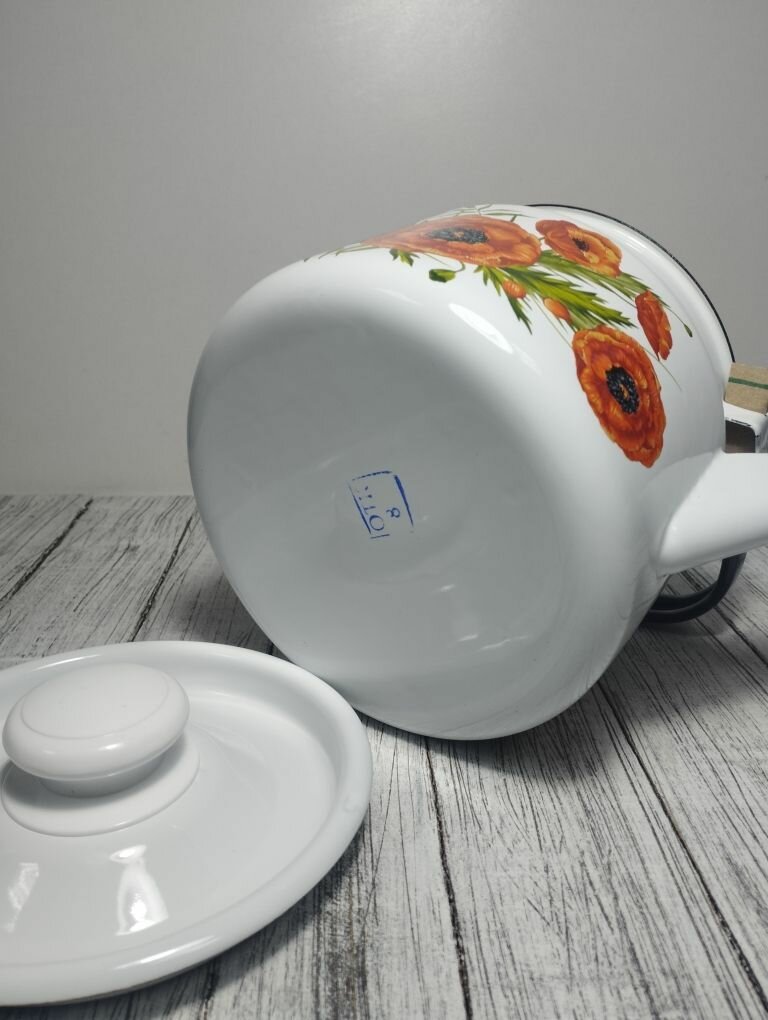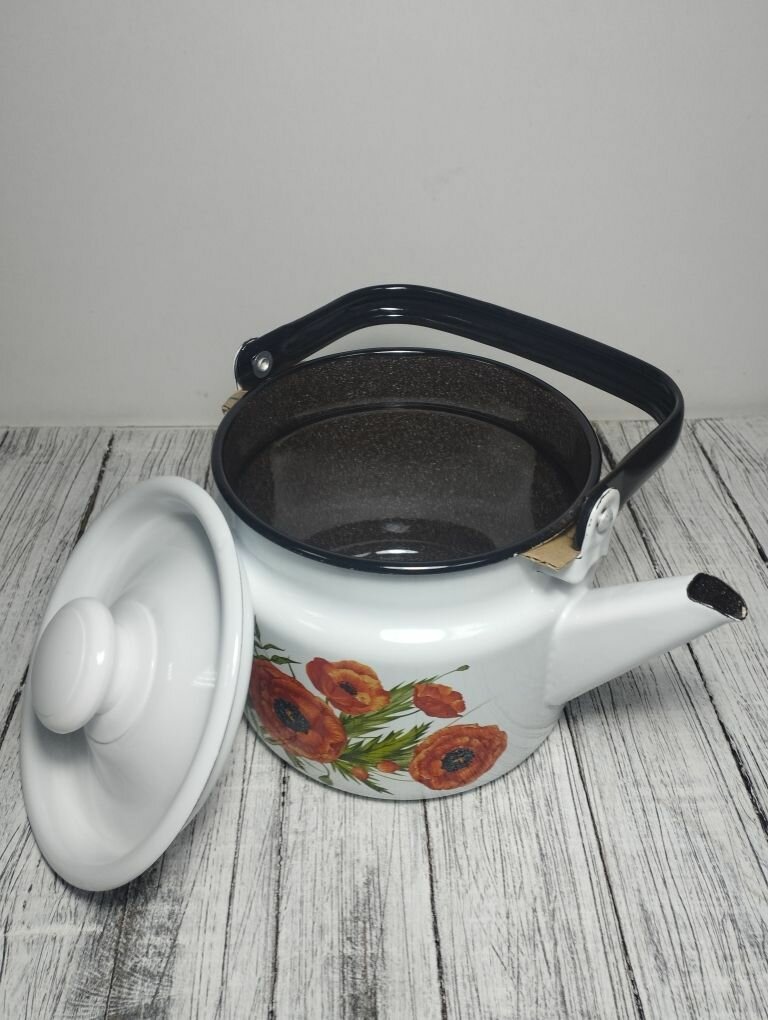 Чайник эмалированный 2 литра Лысьва белый, урожай, подвижная ручка, все виды плит, индукция