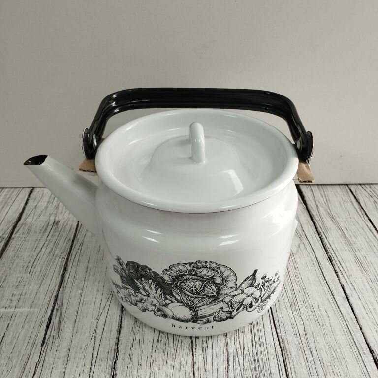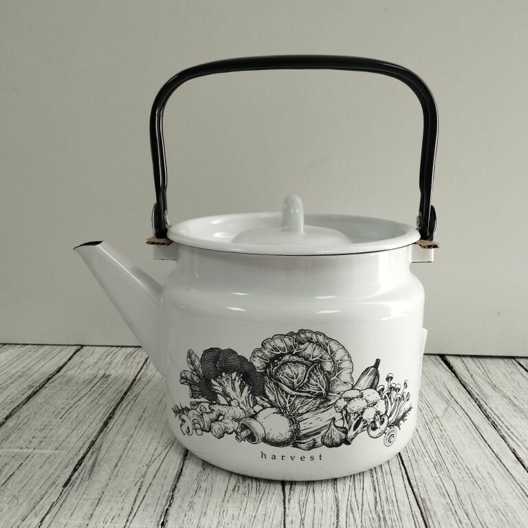 Купить Чайник эмалированный 2 литра Лысьва белый, урожай, подвижная ручка, все виды плит, индукция