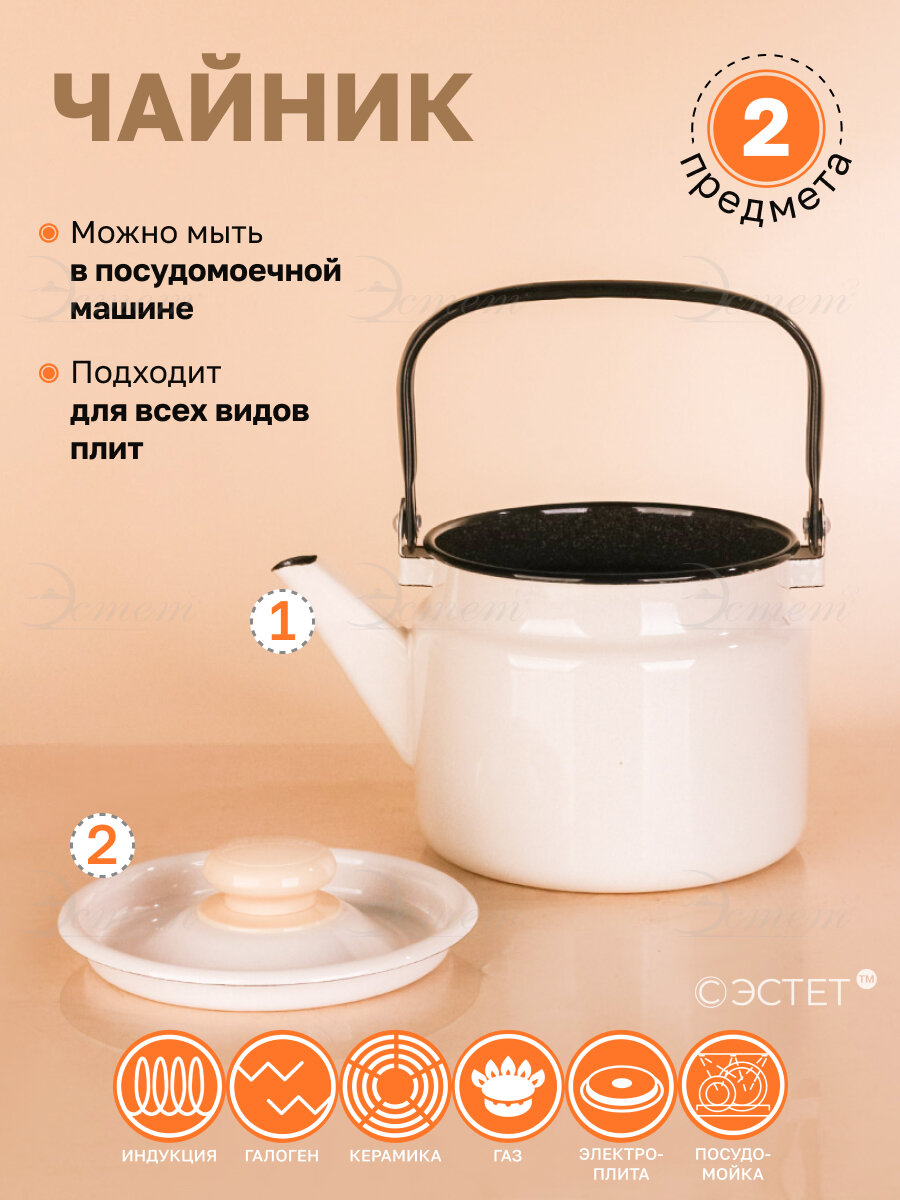 Чайник эмалированный 2.0 л "Жемчужный" для всех видов плит интересное:
