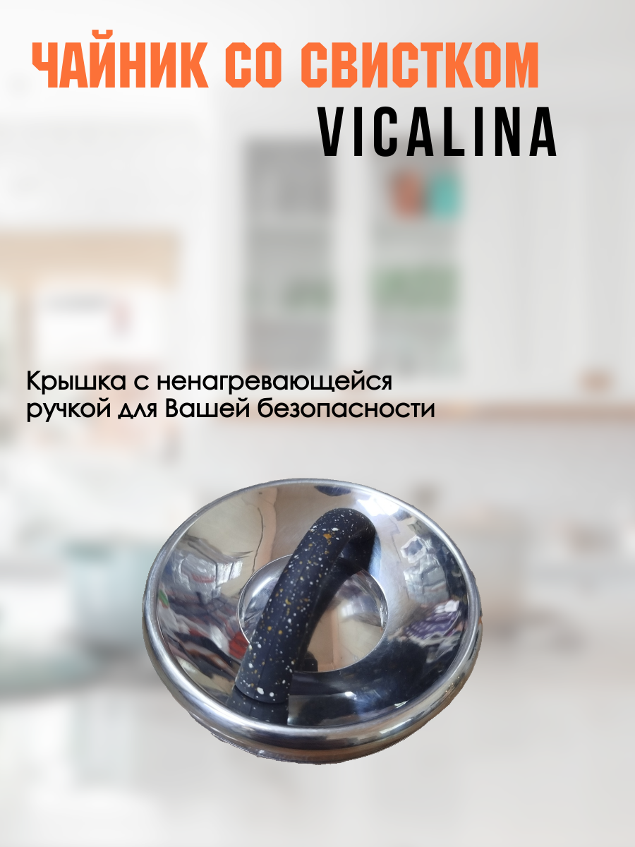 Чайник со свистком 3,5 литра Vicalina vl-9167 цвет черный мрамор интересное: