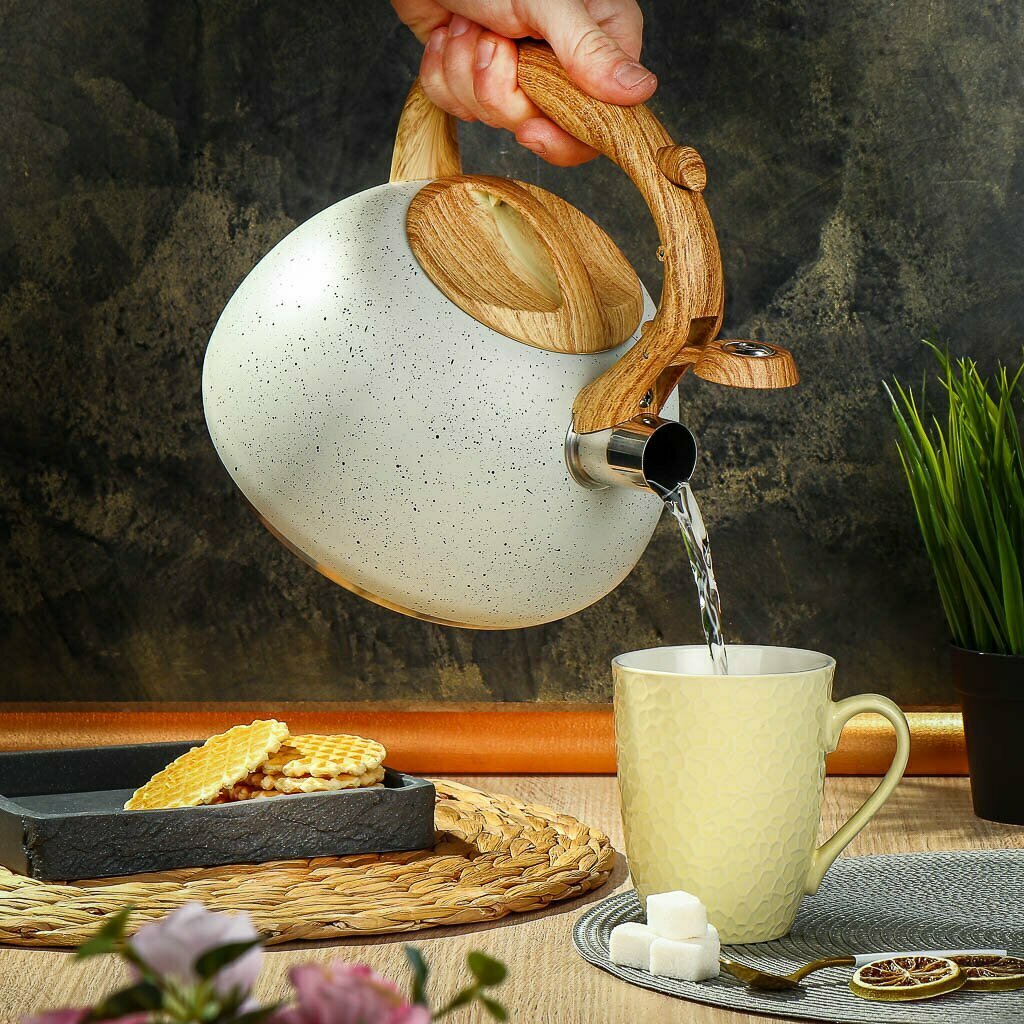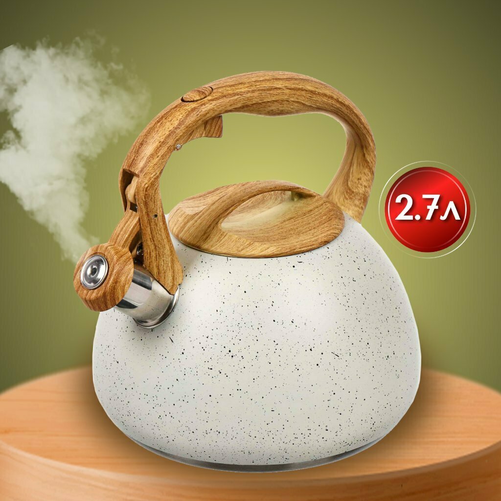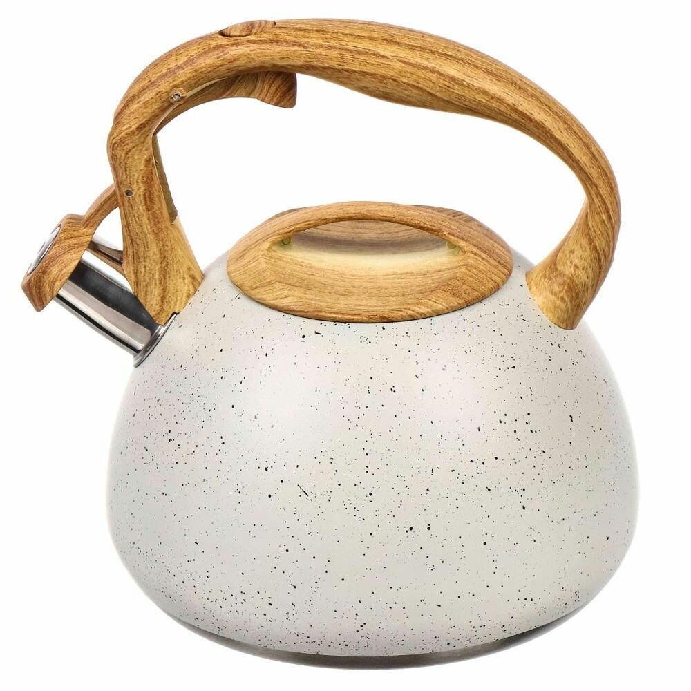 Чайник нерж, 2.7 л, свист, ручк дерев, Daniks, Белый мрамор, индукц, GS-04049H интересное: