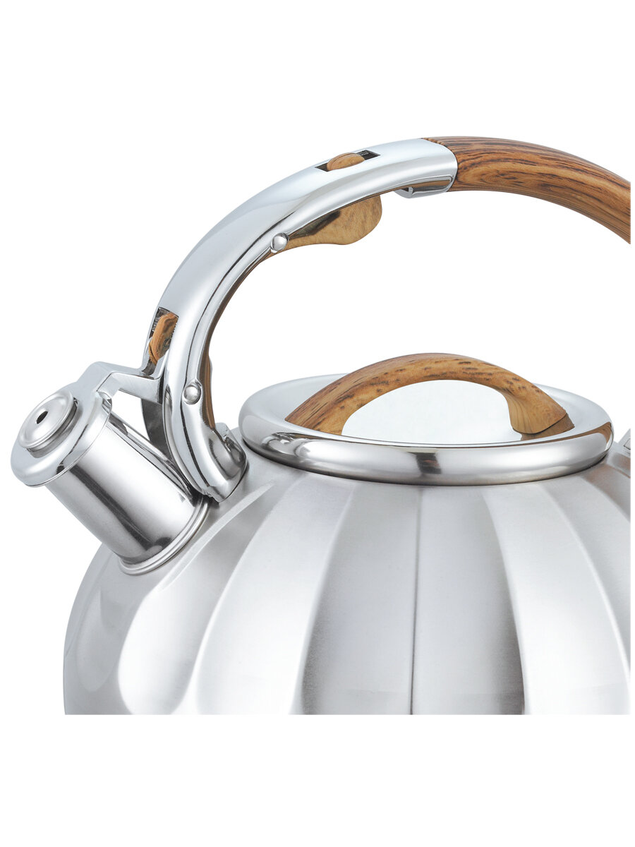 Чайник для плиты со свистком ALBERG AL-3063 3 литра, свисток, из нержавеющей стали 0.5мм, откидная ручка, матовая полировка, индукция
