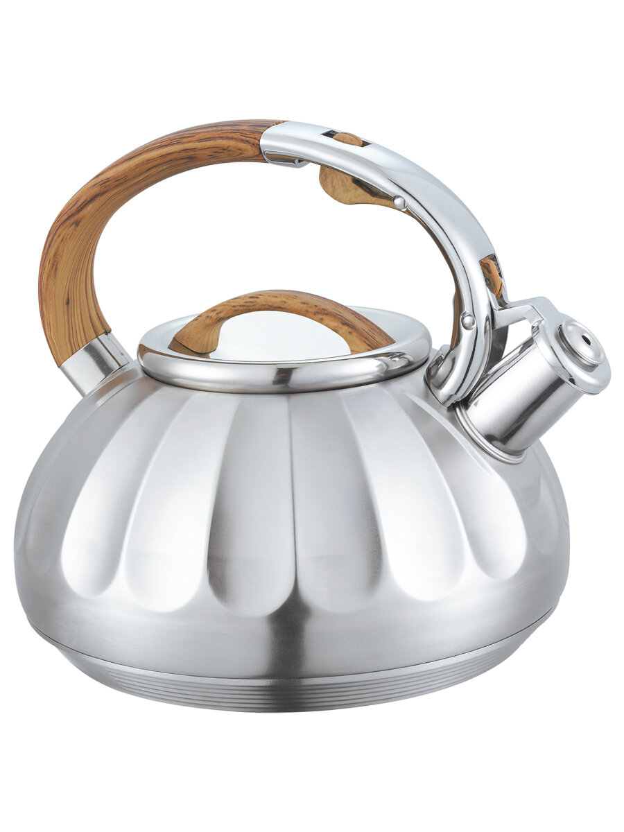 Чайник для плиты со свистком ALBERG AL-3064 3 литра, свисток, из нержавеющей стали 0.5мм, откидная ручка, матовая полировка, индукция