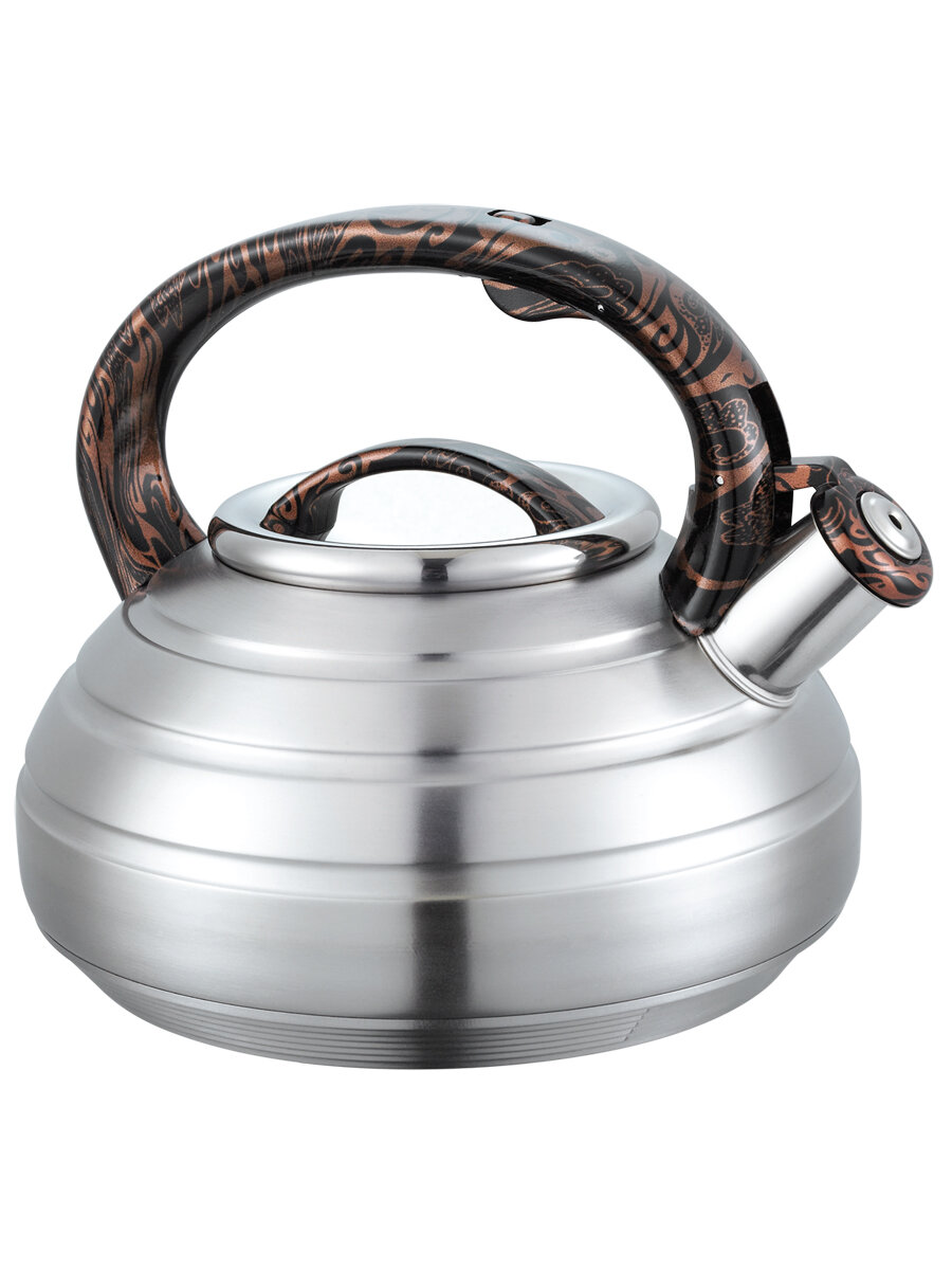 Купить Чайник для плиты со свистком ALBERG AL-3065 3 литра, свисток, нержавеющая сталь 0.6мм, зеркальная полировка, ручка Soft Touch, 7-ми слойное дно, индукция