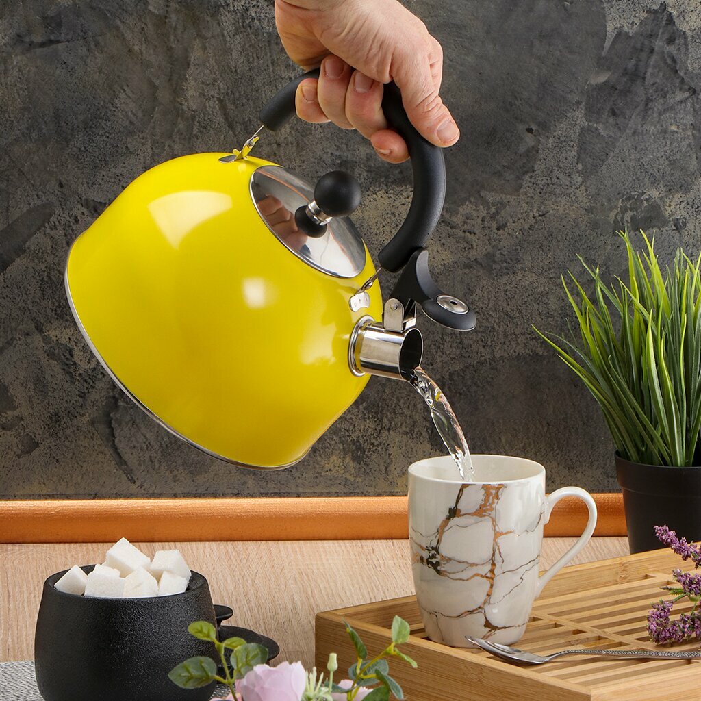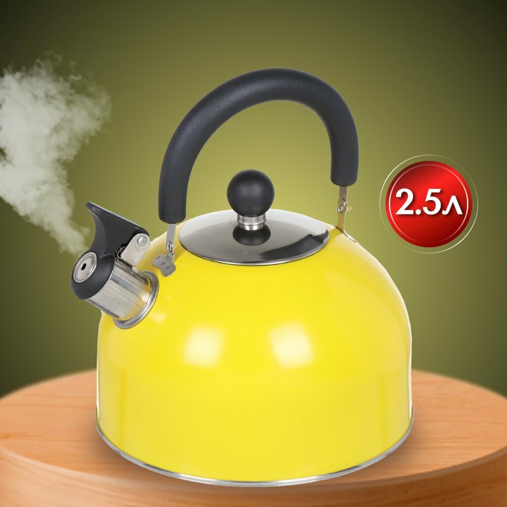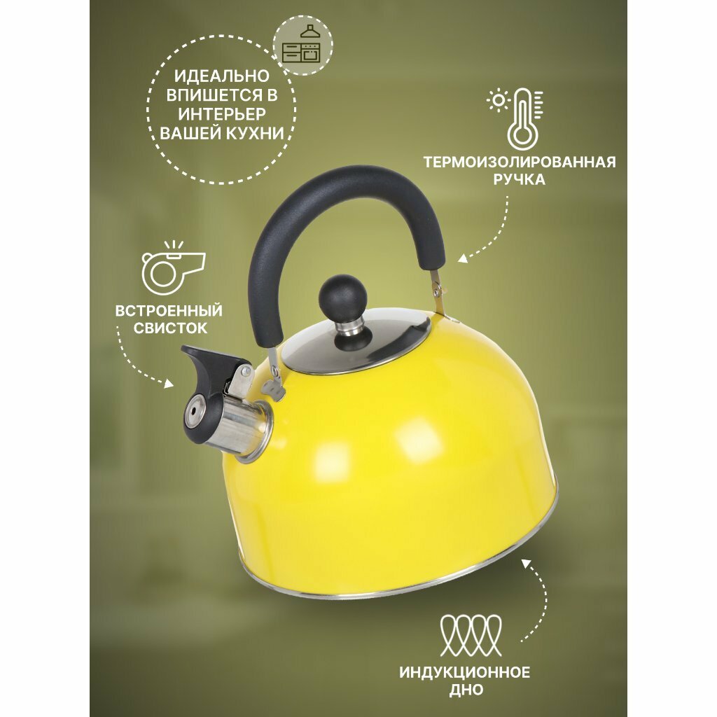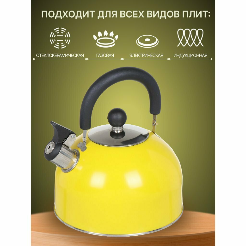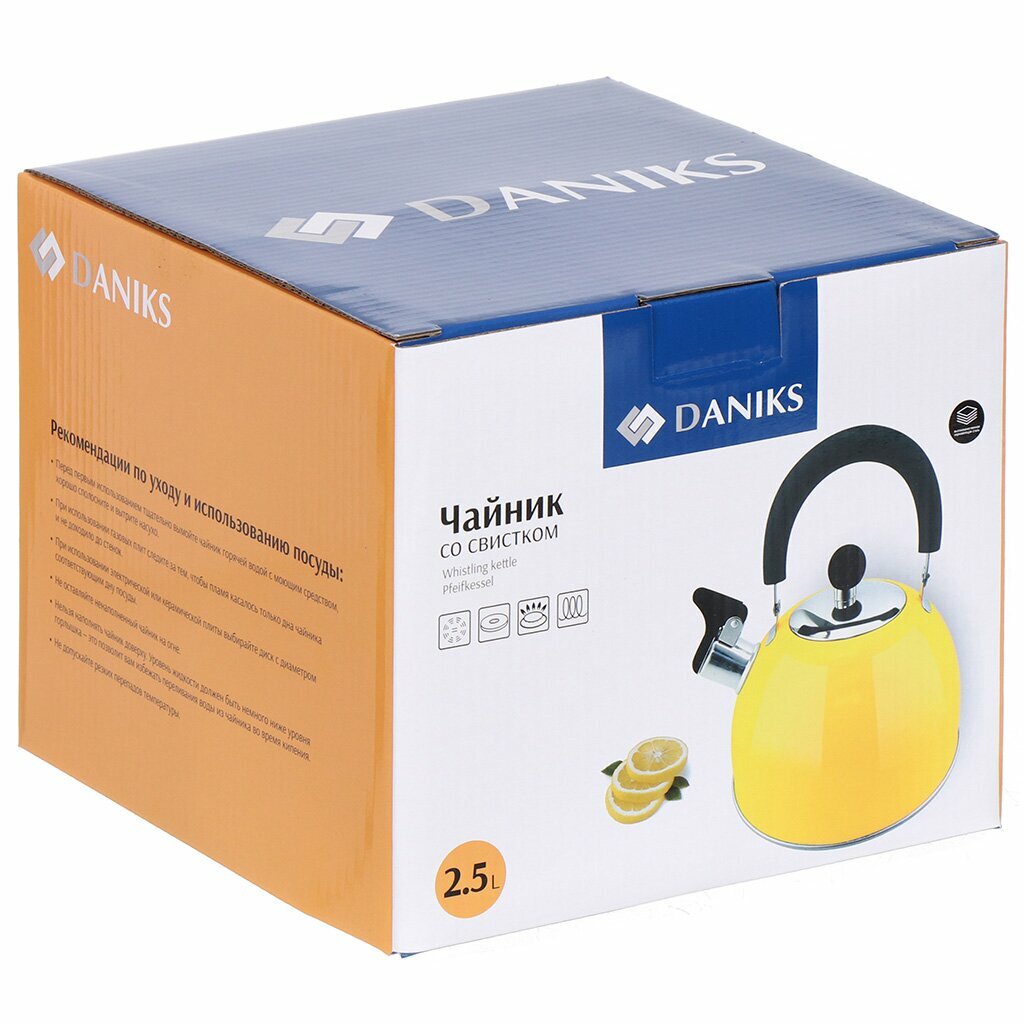 Чайник нержавеющая сталь, 2.5 л, со свистком, матовый, ручка металлическая, Daniks, желтый, GS-04011 интересное: