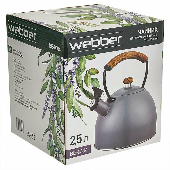 Чайник со свистком Webber BE-0604, нержавеющая сталь, индукция, 2.5 литра, серый интересное: