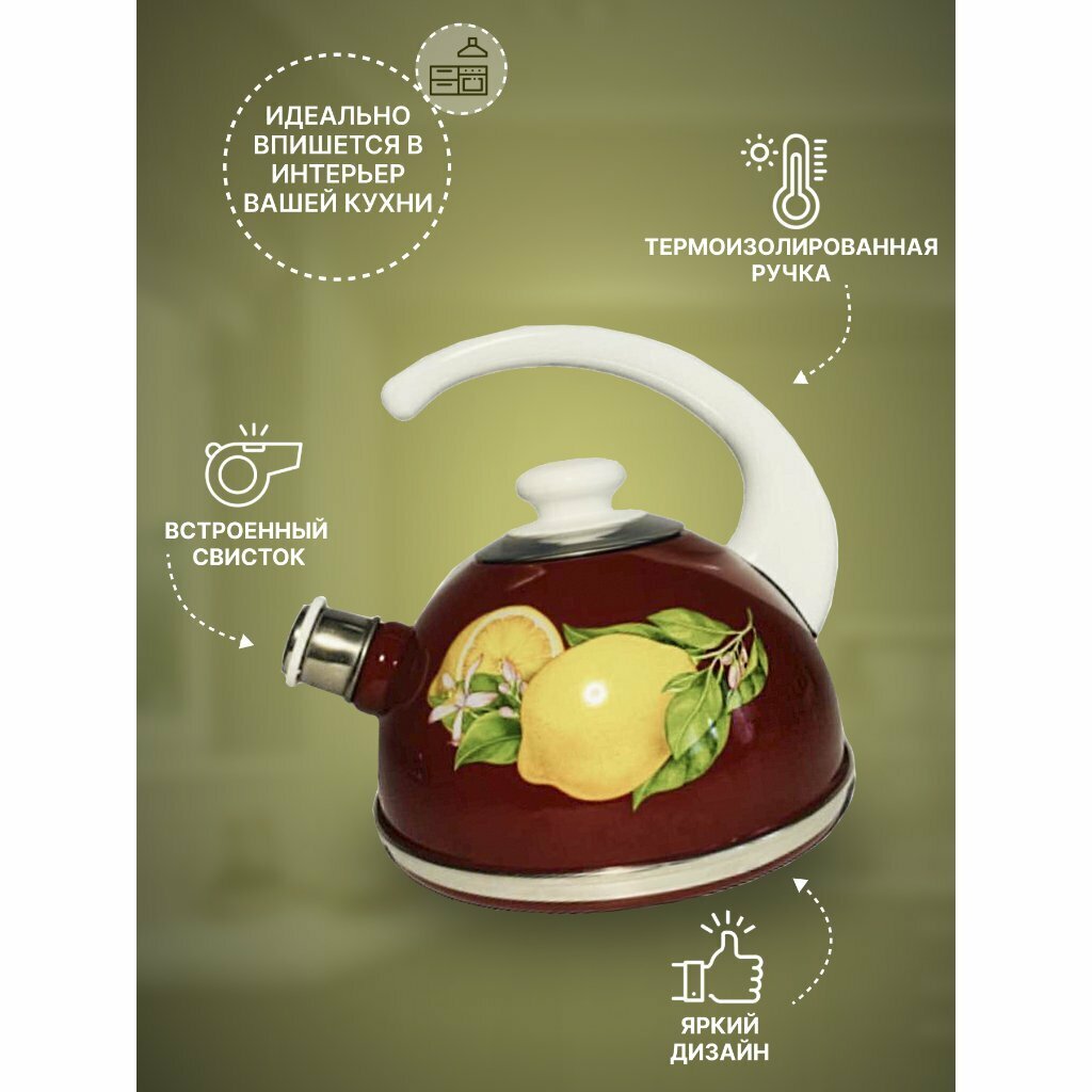 СохранитьРубин чайник для плиты из эмалированной стали со свистком, 2.5 л, бордовый интересное: