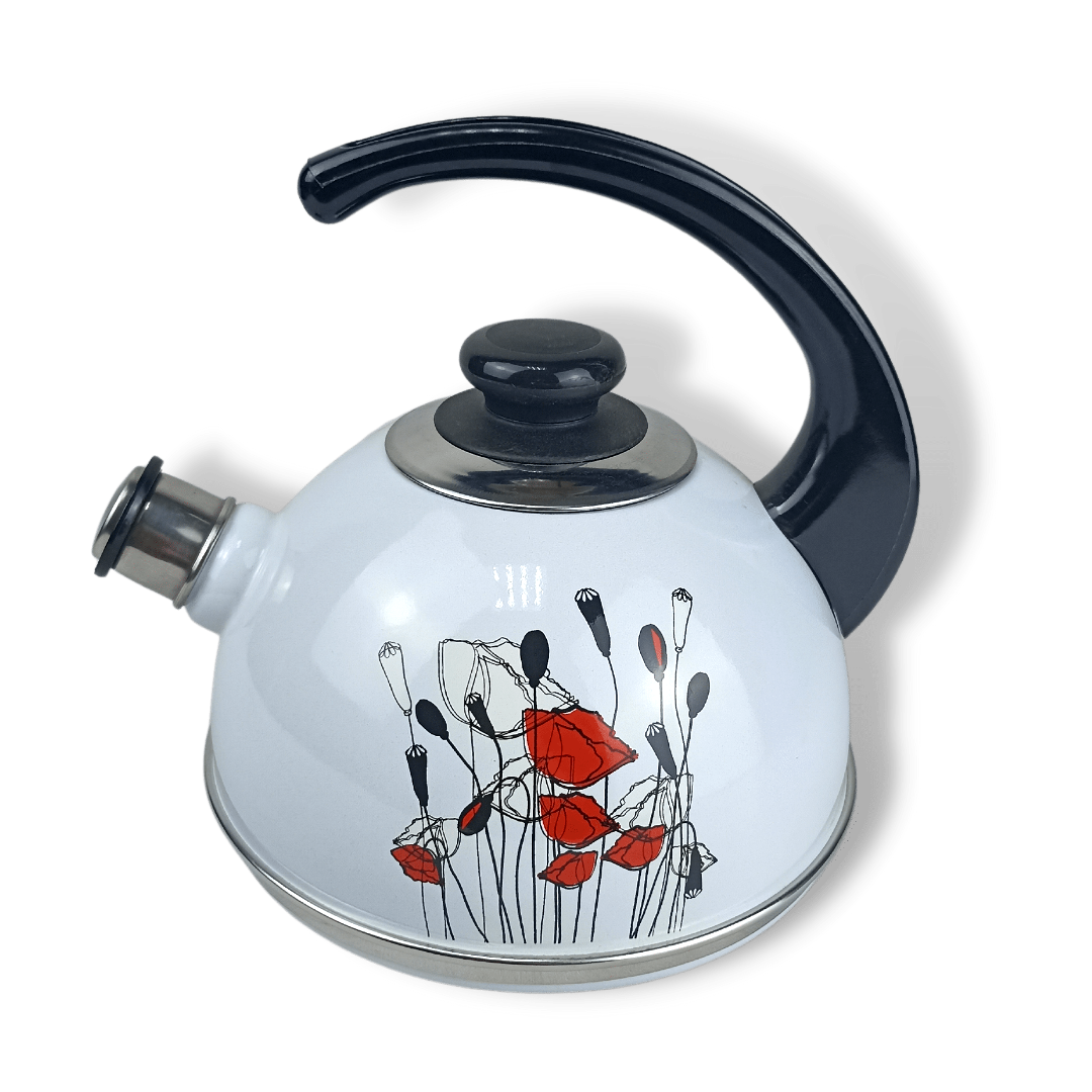 Купить Чайник для плиты 2,5л Т04/25/03/43 конс. ручка белый/полевые маки(декор-нержавеющая сталь)
