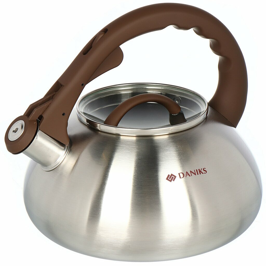 Чайник нержавеющая сталь, 3 л, со свистком, матовый, Daniks, Emerald, индукция, коричневый, DSC-8804 интересное: