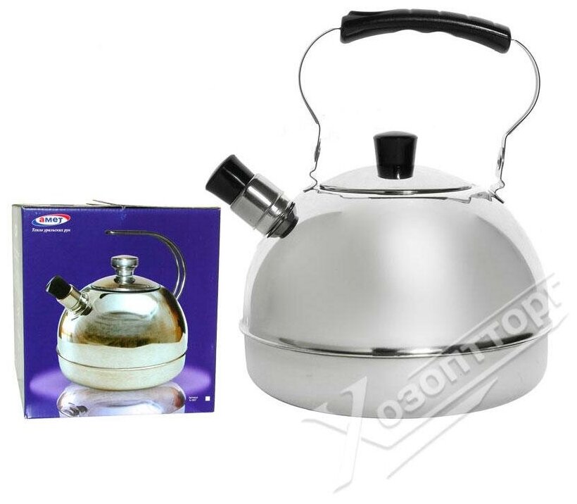 Купить Амет Чайник со свистком 1с2719 3 л, 3 л, серебристый/черный