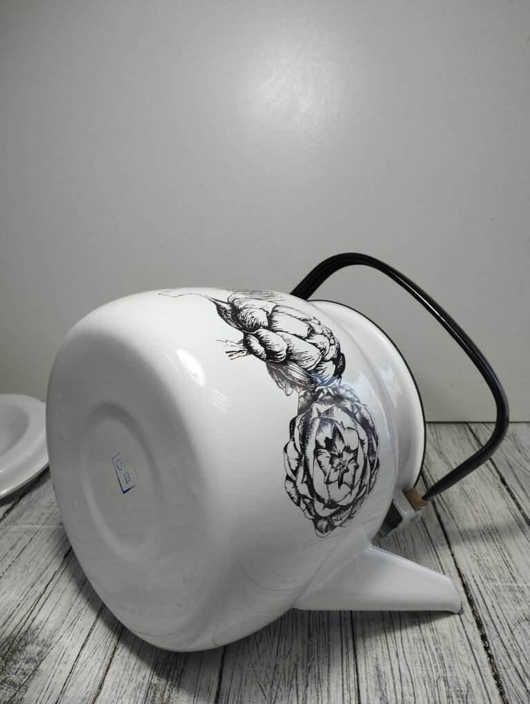 Чайник эмалированный 3,5 литра Лысьва белый урожай, подвижная ручка, все виды плит, индукция