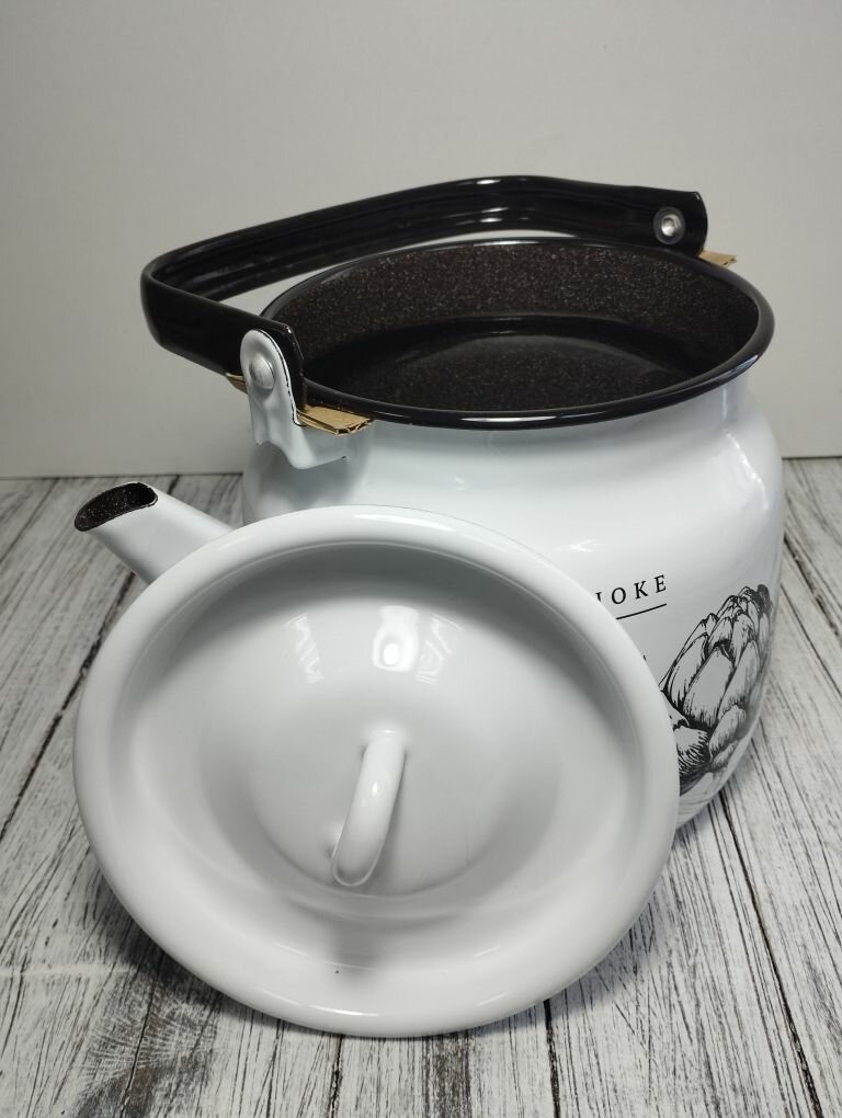 СохранитьЧайник эмалированный 3,5 литра Лысьва белый артишок, подвижная ручка, все виды плит, индукция интересное: